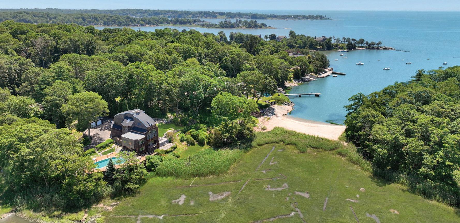 This year-round waterfront cottage features its own private beach and sweeping views of Long Island Sound.
