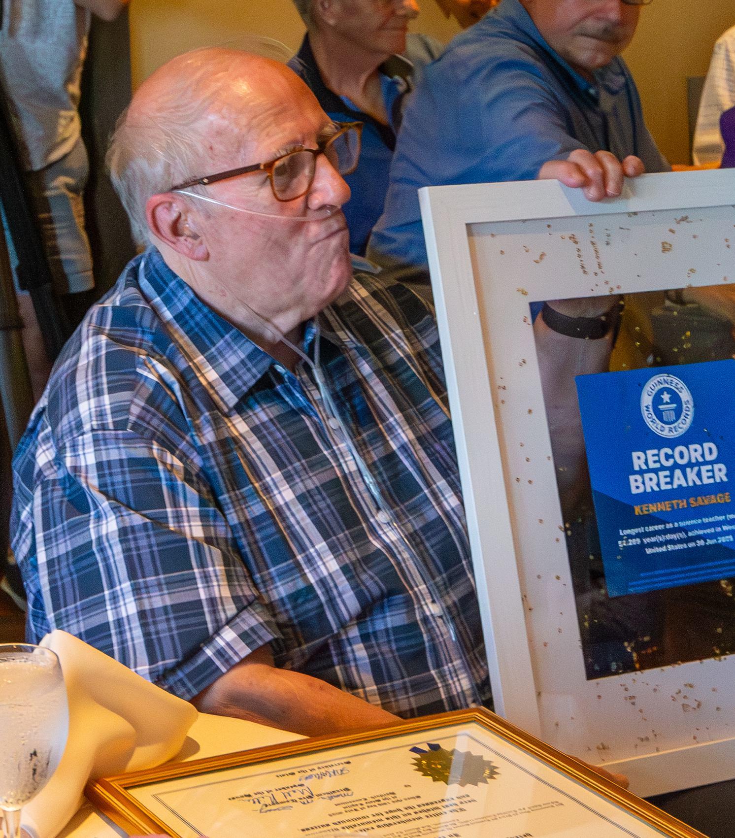 What he didn’t expect was that this retirement would come with a world record. According to Guinness World Records, Kenneth now holds the title for the longest career as a science teacher (male). The award was presented to him by his daughter, son, and grand-