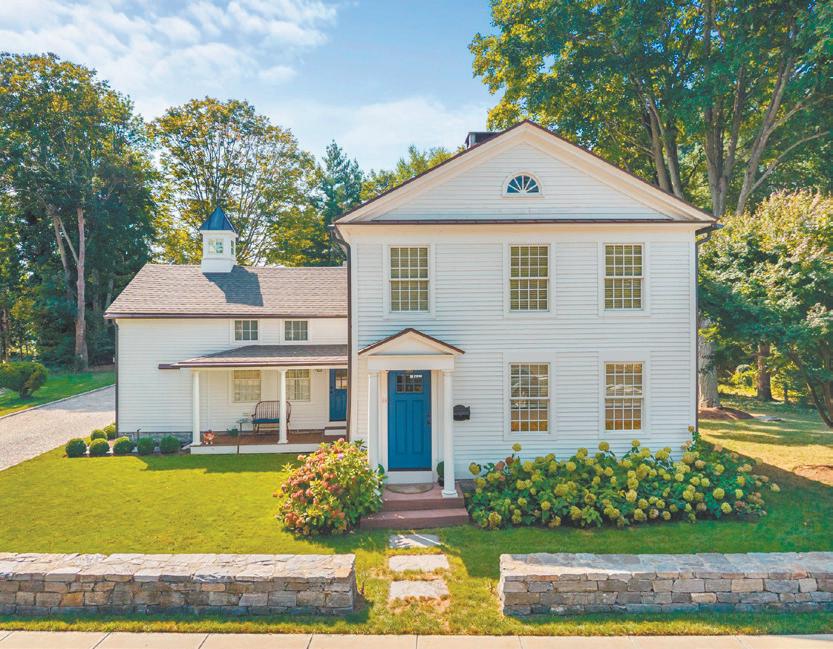 Additional features include a detached threebay garage with an unfinished second story, newly installed oversized custom windows and French doors, a marble-surround center chimney fireplace, and a new gas fireplace in the family room. Gleaming hardwood floors run throughout the home. The chef’s kitchen is outfitted with a quartz island, wine storage, prep sink, granite double sink, Kucht gas range, and wall ovens. With a serene natural setting and convenient access to I-95, 14 Ely Lane offers better-than-new construction and is ready to welcome its next owner.