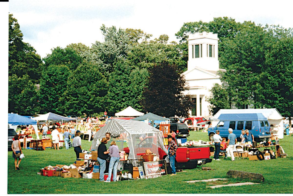 Shoppers browse vendor booths on the green during a previous Flea Market at Deep River Congregational Church. This year’s event will be held Saturday, Aug. 16, from 8 a.m. to 2 p.m. on the church grounds and Marvin Field.