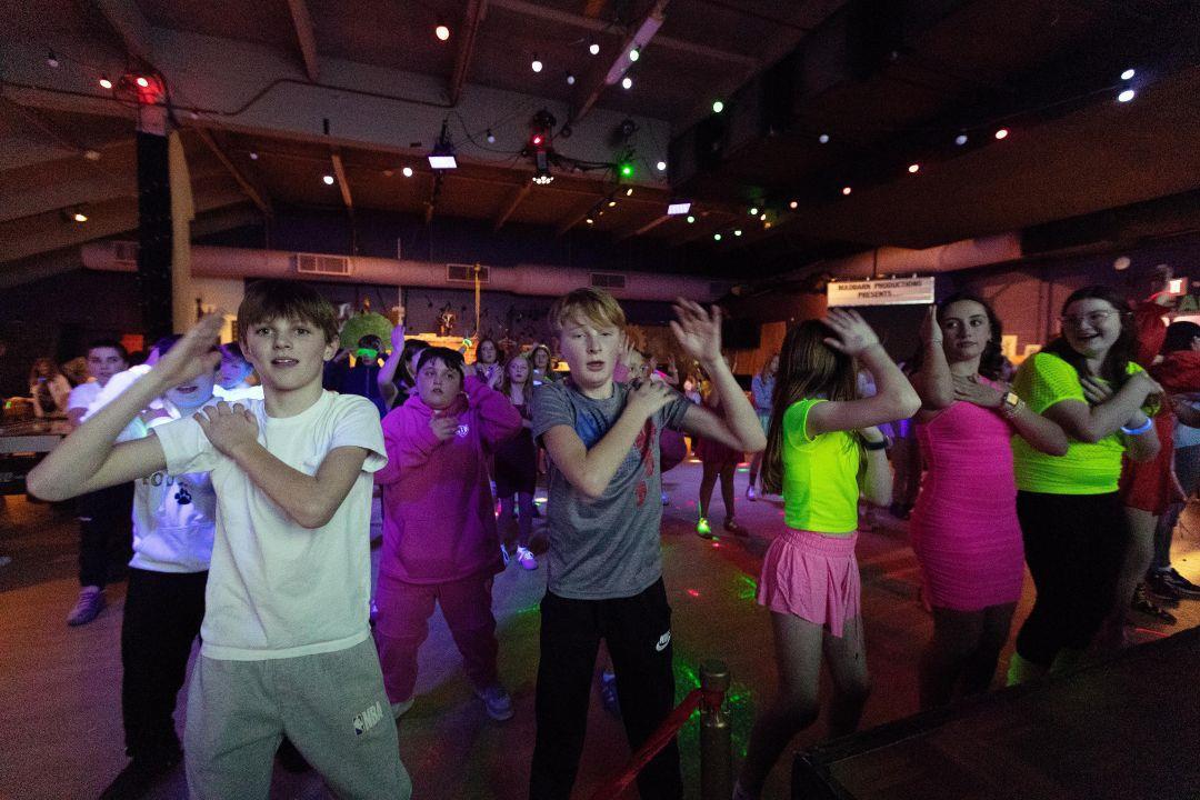 Students dance in neon and glowin-the-dark attire during the sixthgrade Neon Dance on Friday, Jan. 30, at Madison Arts Barn. The event featured games and prizes for the best dancers as they enjoyed music by DJ Brian from Tri-State DJ Co. For more information on events at Madison Arts Barn's 25th season, visit madisonartsbarn.org.