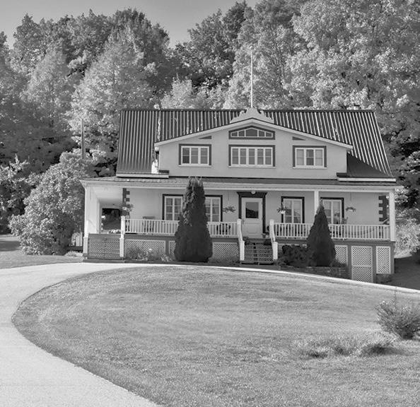 This home features three bedrooms and three full bathrooms, including a private primary suite—wide pine floors run throughout, complemented by four fireplaces and a wraparound deck. The openconcept layout brings a sophisticated farmhouse feel, and the chef’s kitchen features handcrafted cabinetry, granite countertops, and Sub-Zero and Wolf appliances. A main-floor laundry room adds convenience, and a bright sunroom opens to the deck with remarkable views of the surrounding land.