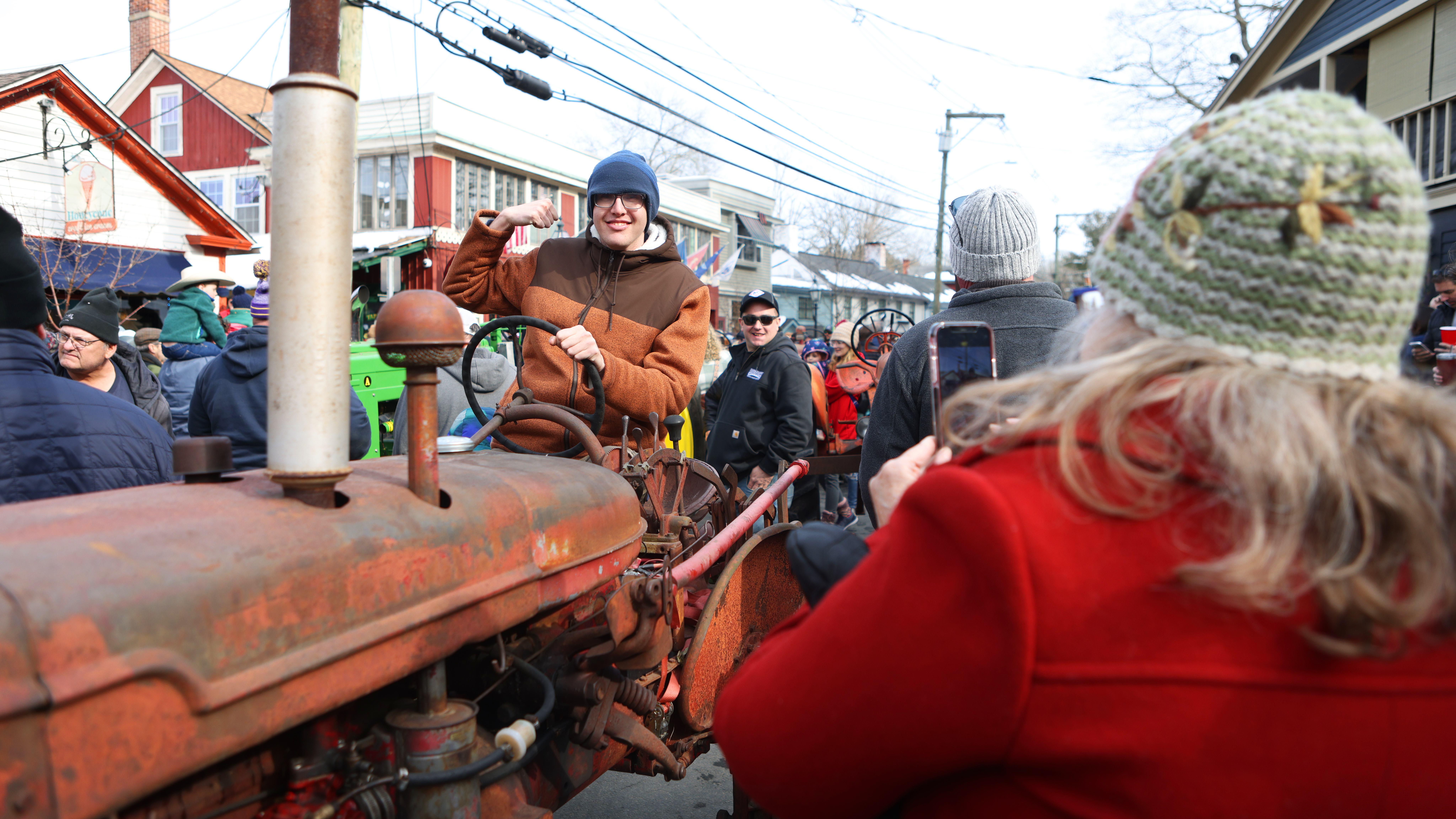 Henry Fischer of Vista Life Innovations sits atop a tractor during the annual Chester Tractor Parade on Feb. 15. The winter celebration features live music and a chili sale benefiting the Chester Hose Company, while local businesses offer food and drink specials throughout Chester.
