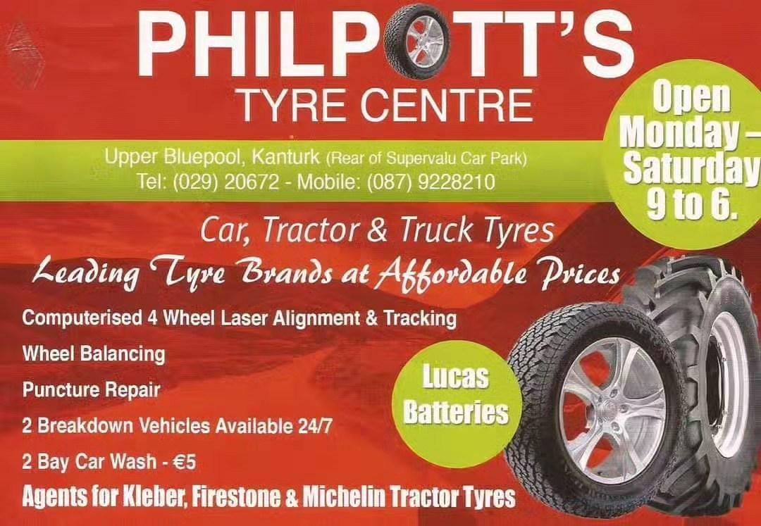 Philpott’s Tyre Centre Upper Bluepool Kanturk P51CT80 029 502672 087 9228210 Service 087 9228210 CALL OUT For A Great Service