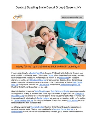 Dazzling Smile Dental Group is a Bayside based family dentist practice that treats patients of all ages. We are committed to delivering the highest quality dental care and do so using advanced dental equipment. We are a cosmetic dentist that offers services like checkups, teeth cleaning, crowns, veneers and more.