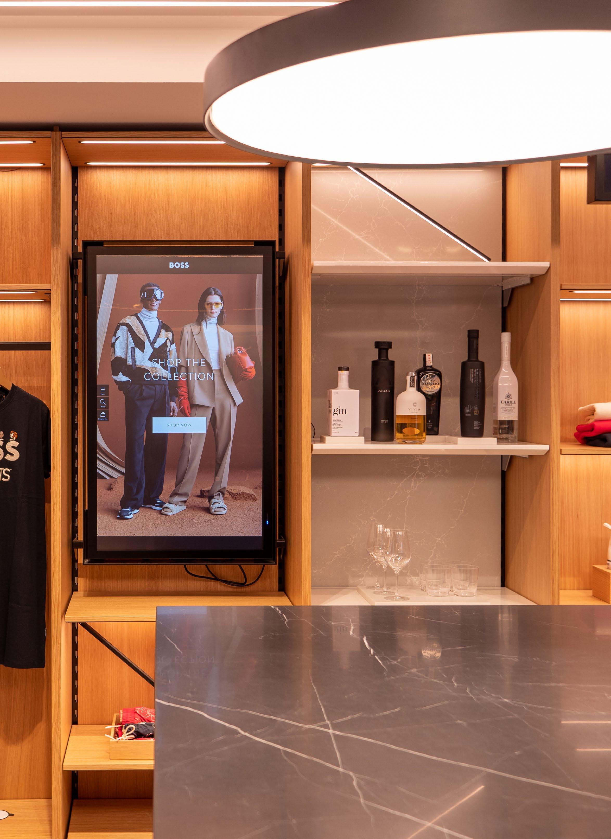 The 15,000 sq ft flagship spans two floors and has been fully redesigned to reflect the refreshed BOSS identity. The store brings together the complete Menswear and Womenswear collections, introducing an expanded womenswear offer with shoes, accessories and fragrances, and adding a made-to-measure service within the menswear department. A highlight of the project is the first ever BOSS Bar, creating a social space within the store that adds a new dimension to the shopping experience.