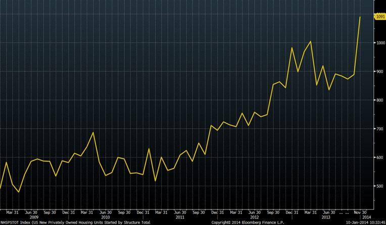 The U.S. economy continues to recover. The unemployment rate has fallen steadily since 2009 and is now at 6.7%. The underemployment rate (which includes part-time workers and those that would like to work but have stopped looking) has fallen to 13%, which is still very high but marks an improvement from 17% in early 2010. Housing starts are up, as the housing market continues to recover, and consumer confidence rose in late 2013. U.S. GDP growth was 2.0% in 2013, and we’re forecasting an improvement to 3.0% in 2014.