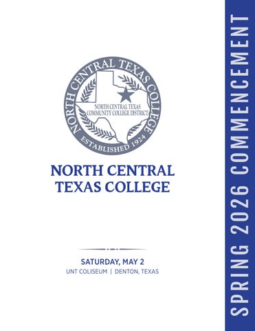 Commencement is a ceremony in which preliminary degree and certificates are recognized for their academic achievements. The commencement program reflects the name and degrees and certificates of each preliminary degree candidate as well as the honors designation based on the previous semester’s progress. Conferral of the official North Central Texas College degrees and certificates occur after commencement when final grades are posted and all degree requirements have been met. The program only lists those candidates who applied by the appropriate deadline. Therefore, this program should not be considered an official list of graduates.