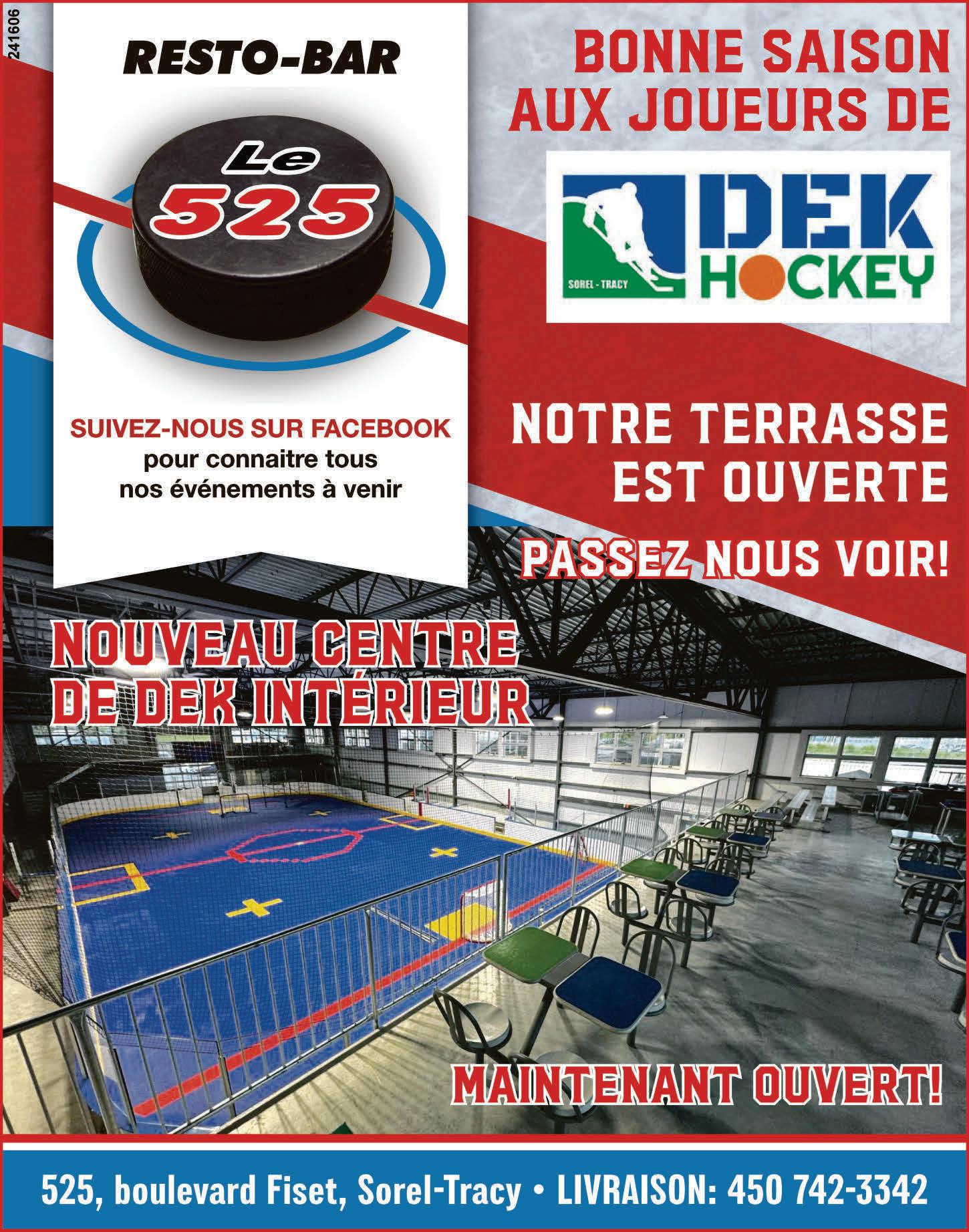 Depuis quelques semaines, le Dek Hockey Sorel-Tracy accueille les hockeyeurs dans son nouveau centre intérieur. Comptant désormais sur trois surfaces de jeu, l’organisation présentera deux tournois cet été, soit la Coupe Bob Bissonnette le 13 juillet et un tournoi de niveau junior sanctionné par la NBHPA le 17 août. Par ailleurs, la Xtreme Zone Wrestling présentera plusieurs événements de lutte, cet été, dans la nouvelle surface intérieur de dek hockey du Bar 525. Puis, le 7 septembre, la première édition du Tournoi de dek hockey Opportuniste aura lieu à Sainte-Victoire-de-Sorel. Les équipes disputeront une période en supériorité numérique, une période en désavantage numérique et une période à trois contre contre. Photo Nicolas Deguise