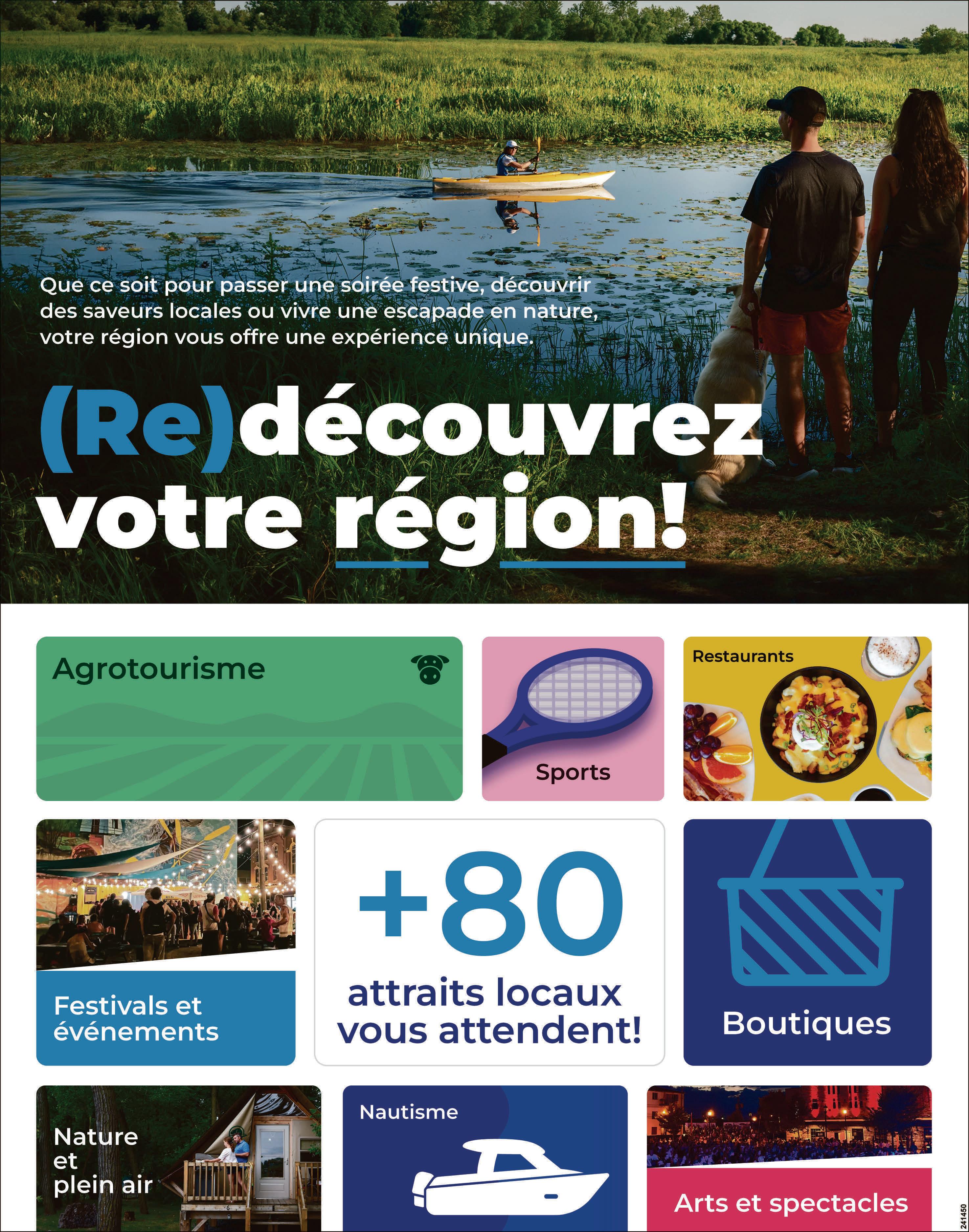 Cet été, je vous invite à (re)vivre une expérience touristique extraordinaire, ici même chez nous! Je suis fière de vous présenter la multitude de trésors que recèle notre région.