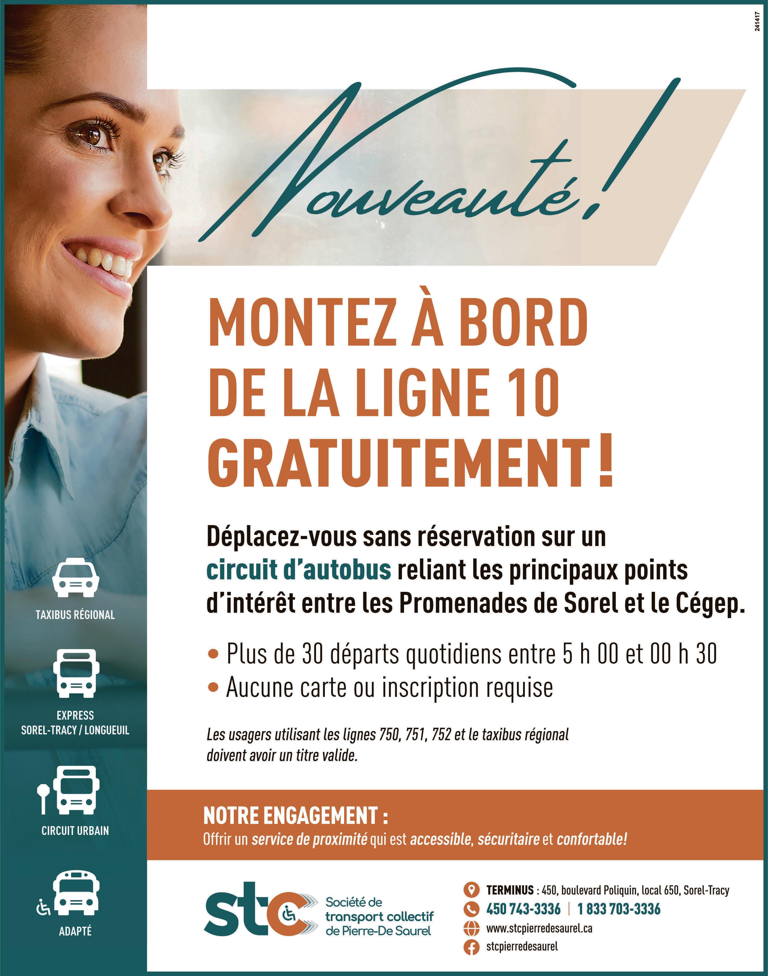 Finalement, une autre très belle manière de découvrir la région est de se procurer une carte Hello au coût de 100 $, donnant accès à plus 150 $ en produits dans les commerces admissibles de la région de Sorel-Tracy que ce soit des restaurants, des bars, des activités de loisirs ou des commerces d’alimentation. À utiliser comme une carte à puce régulière, elle permet de mettre en valeur encore plus les produits et attraits d’ici et vous encourage à le faire.