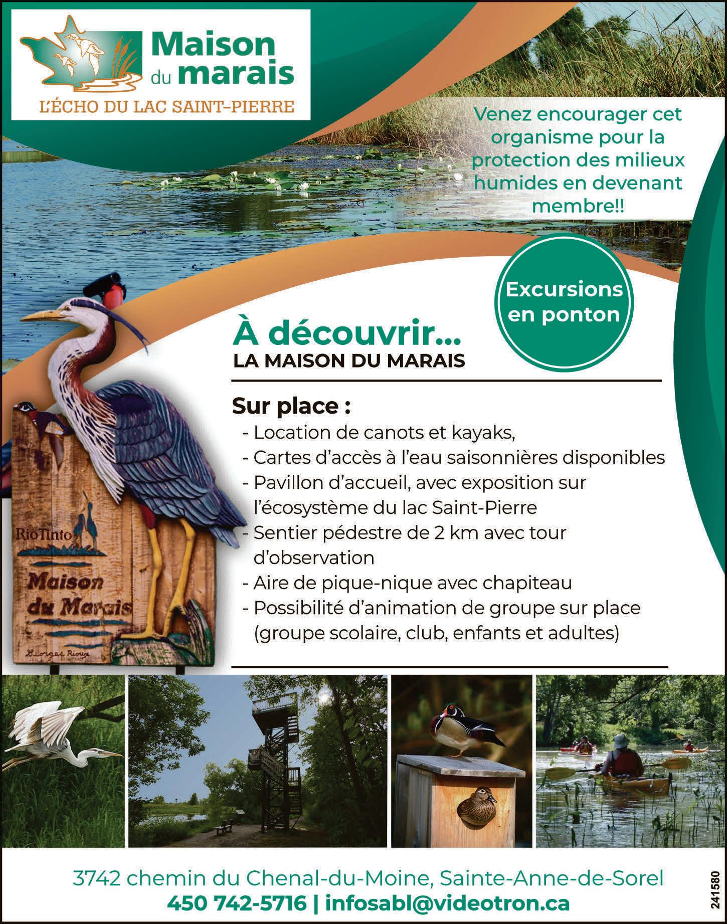 nous avons eu un été avec plusieurs annulations à cause des pluies abondantes. Nous espérons un meilleur été. » Le Camping du Chenal-du-Moine compte 167 sites, tous de type rustique avec une quantité incroyable d’oiseaux. Fait à noter, les campeurs qui y séjournent peuvent obtenir des rabais intéressants pour la location de kayaks, une activité très prisée dans ce secteur aux abords des îles de Sorel.