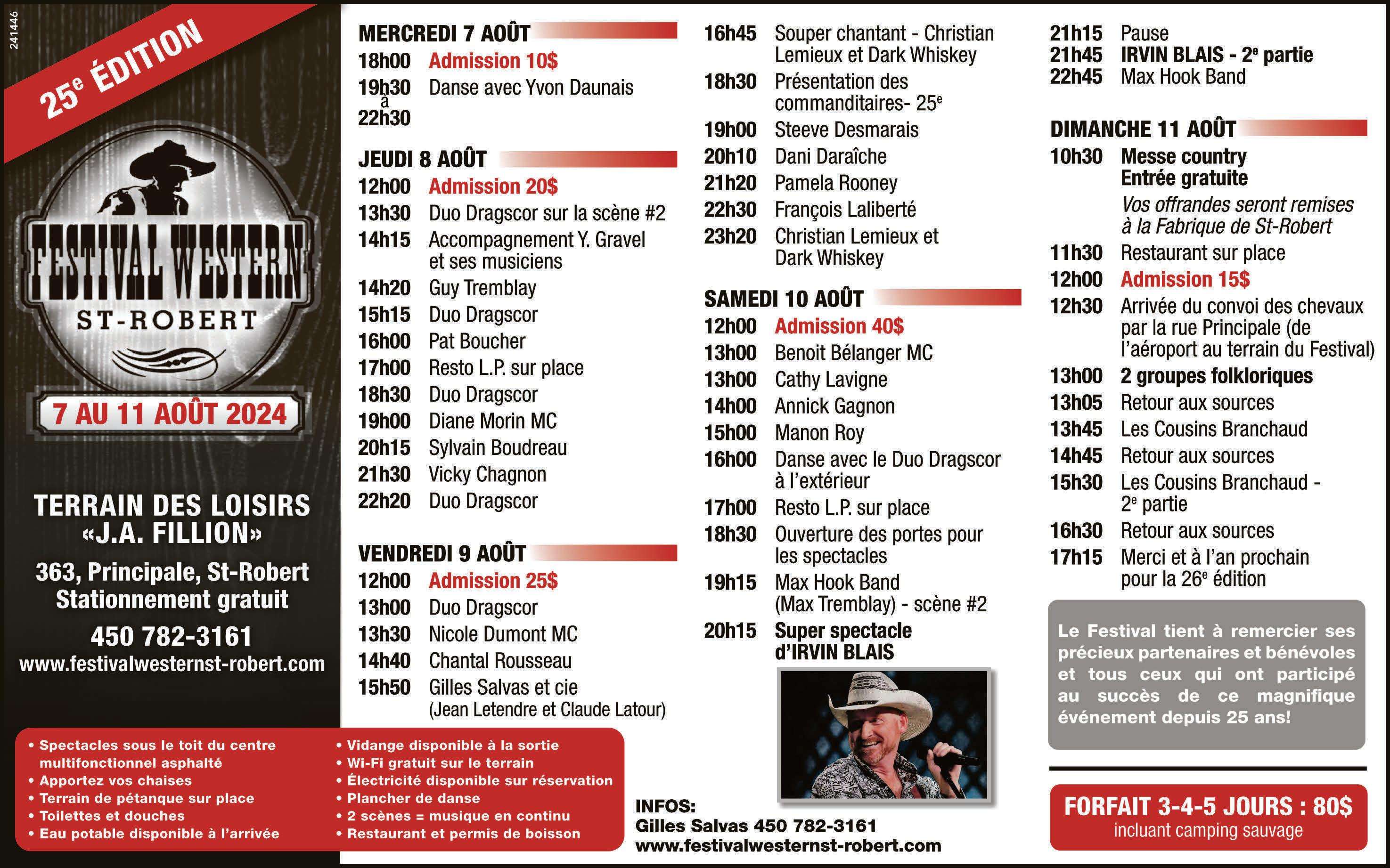 Tracy, afin de donner le coup d’envoi à la saison touristique. Nous sommes également heureux de pouvoir compter sur la participation de notre belle municipalité de Saint-Robert, où se tiendra notamment la 25e édition du Festival western, ainsi que de tous nos précieux annonceurs qui en bonifient le contenu avec leurs offres. Conservez cette édition spéciale à portée de main pour vous accompagner tout au long de l’été. Vous y trouverez une panoplie d’activités afin de vous créer le parfait menu pour un été palpitant. Sur les deux couverts de cette édition, vous pouvez d’entrée de jeu contempler un magnifique portrait capté