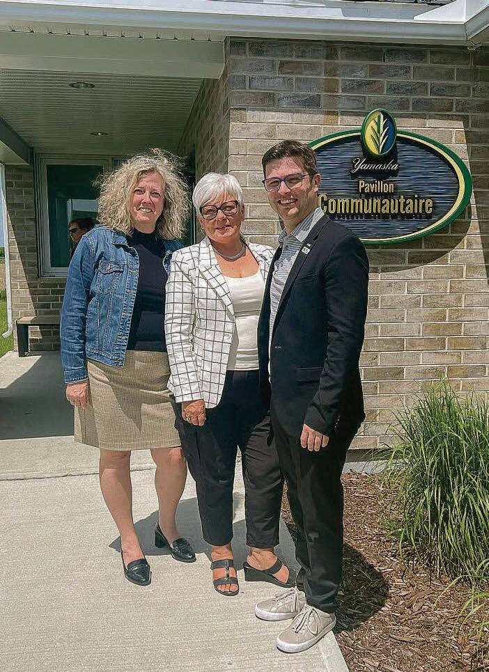 Une journée dédiée au patrimoine a été organisé le 31 mai dernier, à Yamaska. Sur la photo, Annie Goudreault, directrice régionale du ministère de la Culture et des Communications, Diane De Tonnancourt, préfète adjointe et mairesse de Yamaska ainsi que Vincent Deguise, maire de Saint-Josephde-Sorel et préfet. Photo gracieuseté
