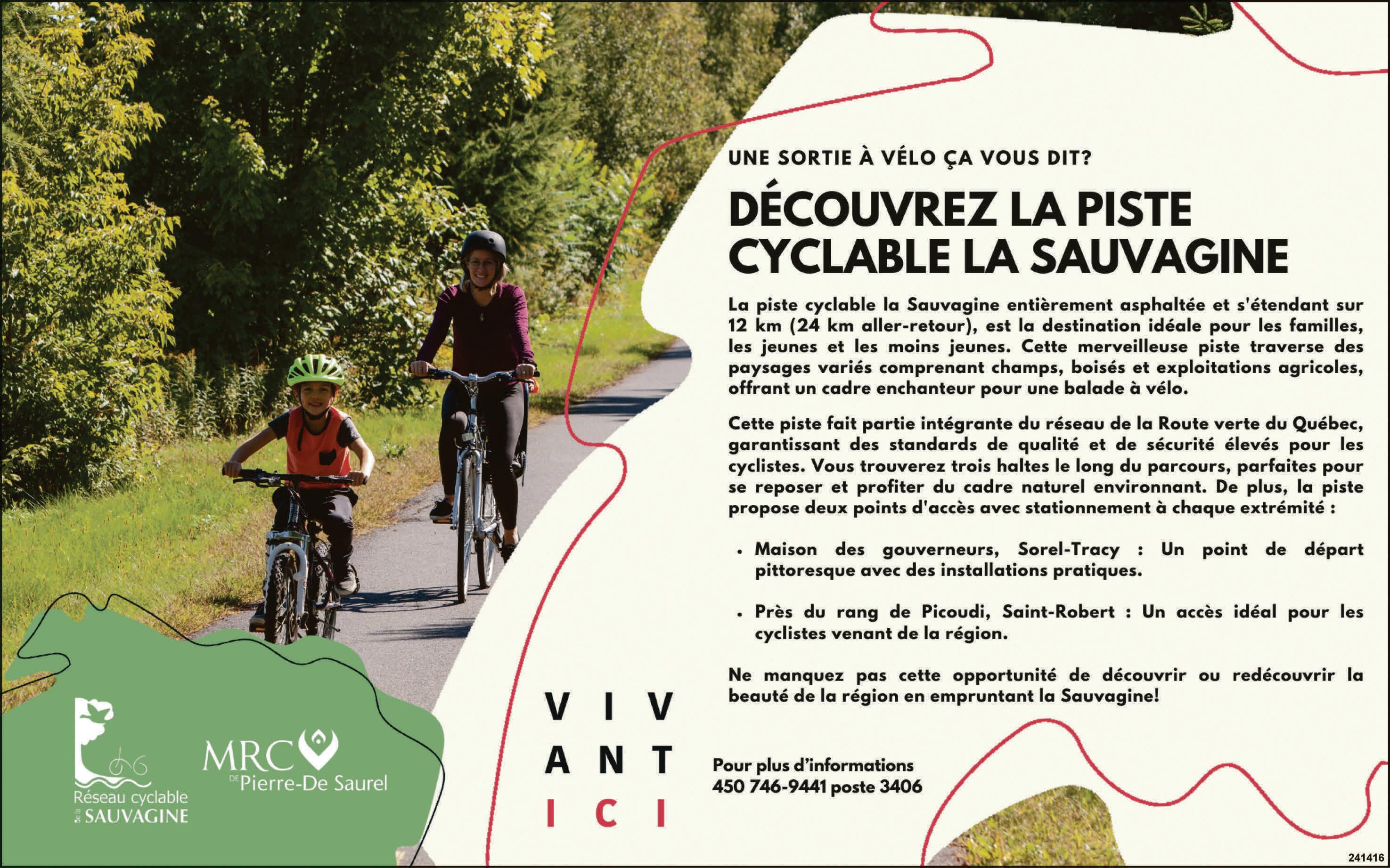 tes cyclables à travers champs et boisés, un milieu agricole riche à proximité de centres urbains teintent la culture de la région et ses habitants. Pourtant, la politique culturelle révèle qu’à « peine 14 % des répondants et répondantes assistent à des activités culturelles plus de deux fois par mois » dans la MRC de Pierre-De Saurel, selon des sondages menés à l’automne 2022 pour la politique culturelle. D’où l’importance de mettre de l’avant encore plus les événements culturels et le patrimoine de toute sorte.