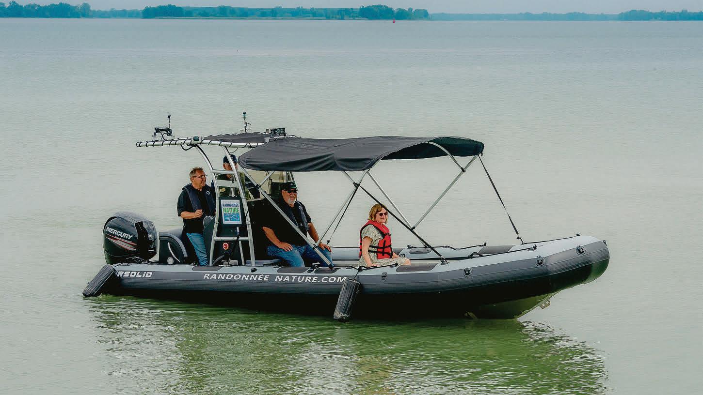 Installés dans une embarcation de style zodiac pouvant contenir un maximum de 12 personnes, les visiteurs partent en randonnée guidée tous les jours de l’été, jusqu’en octobre, à 9 h, 13 h et 17 h. Puisque la randonnée est d’une durée de trois heures, la dernière heure de départ permet aussi de voir le soleil se coucher sur le lac SaintPierre, un attrait supplémentaire pour les amateurs d’excursions nature.