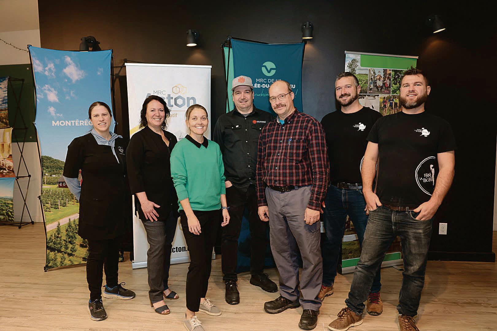 Événement de maillage LaMontérégiepasseàtable avec les producteurs de la MRC d’Acton. Marie-Andrée Gauthier de Délices MG, Isabelle Demers de Les Idées Pousses, Marjorie LebeufBinette d’Expansion PME, Christian Roberge de Bob Magnale Artisans Brasseurs, Lucas Sévigny de Ferme Laobec, Philippe Benoit et Maxime Dion de Ferme La Bourrasque et, Dominic Châtelain et Chantal Boulé des Trouvailles Gourmandes du Canton (absents sur la photo).