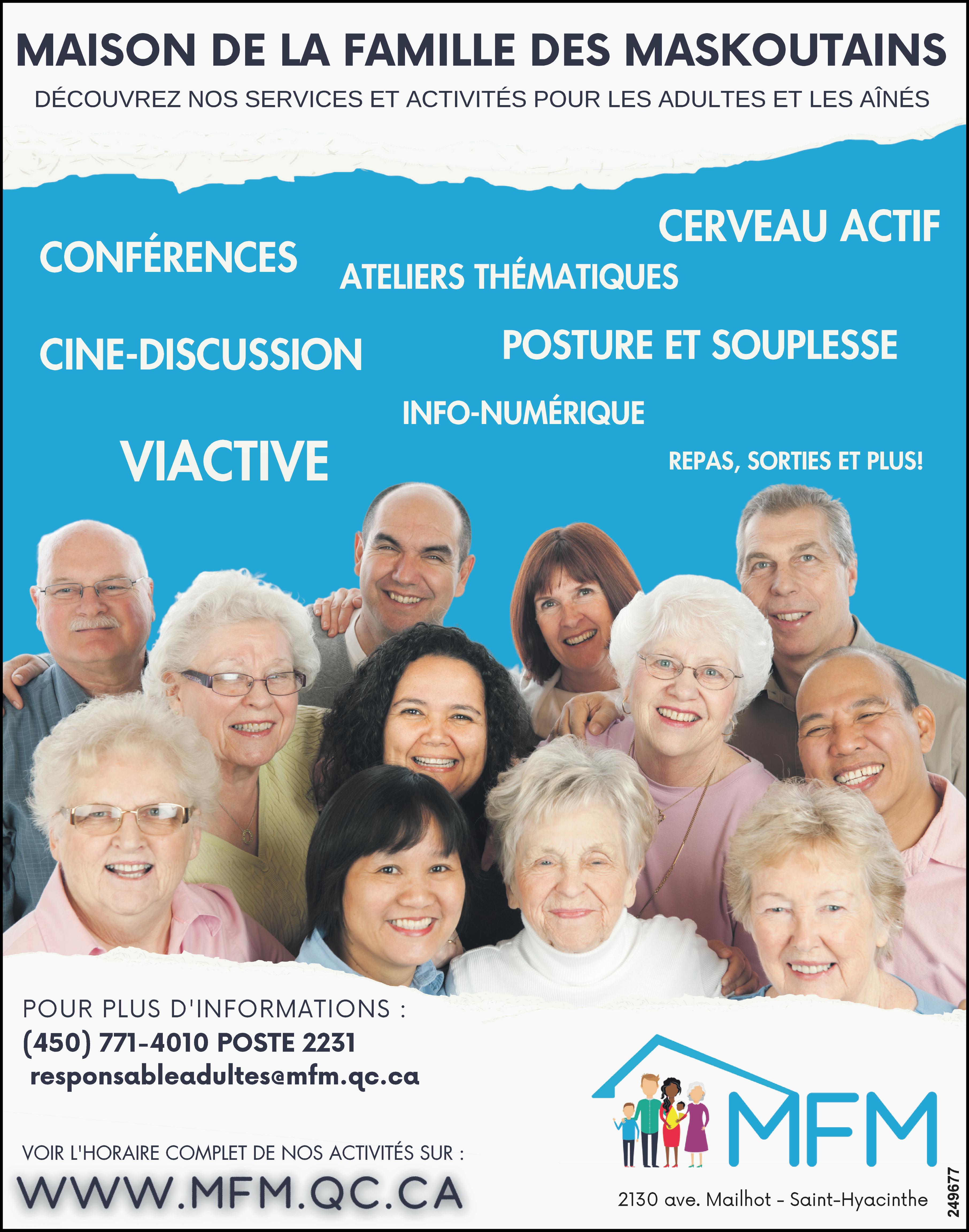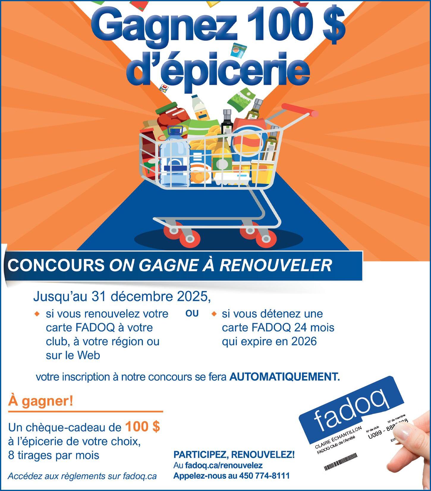Pour plus d’informations et pour réserver votre place, contactez-nous sans tarder au 450 774-8111 poste 8 | loisirs@fadoqry.ca.