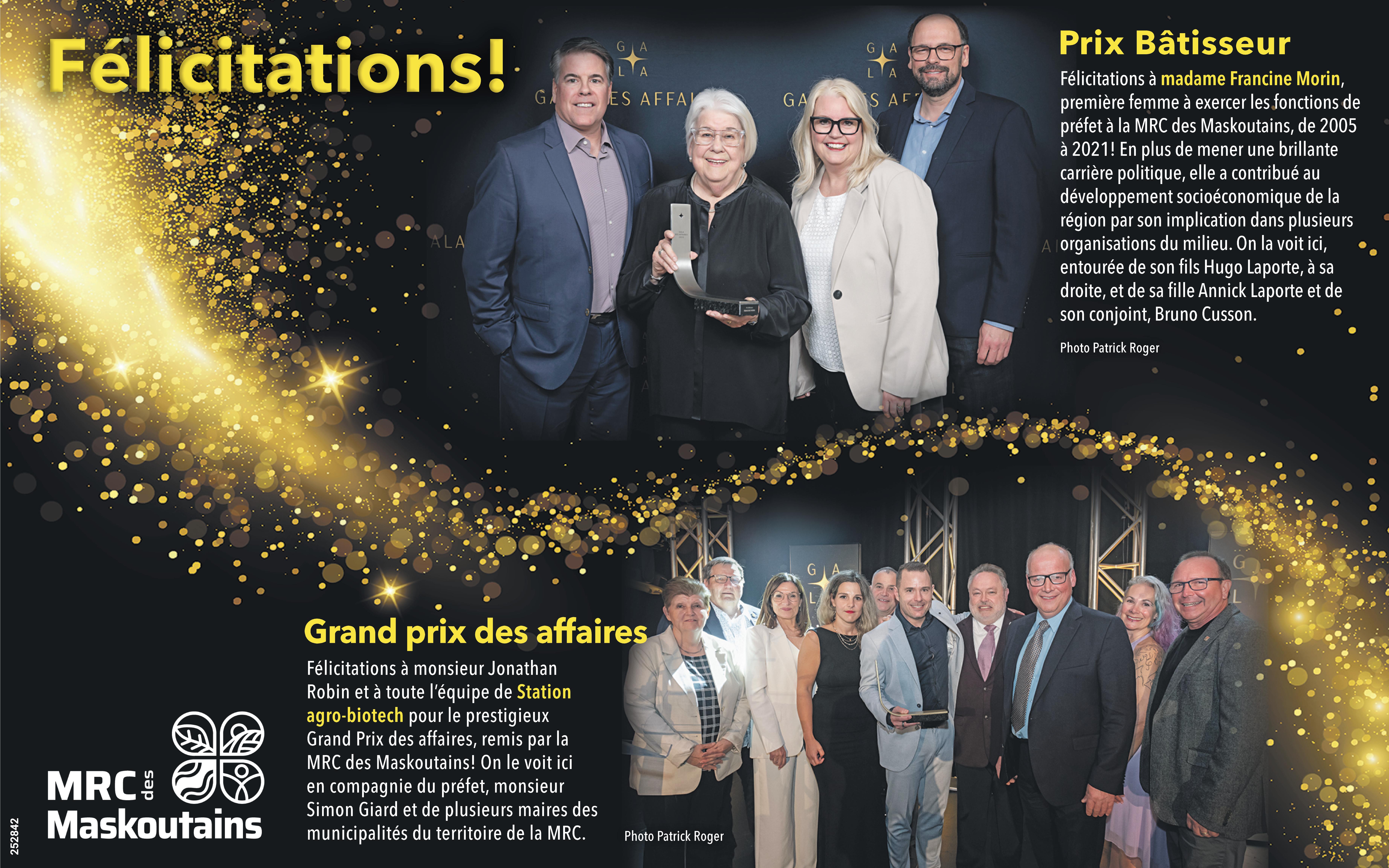 Votre dynamisme, votre créativité et votre résilience font notre fierté et je me réjouis de les voir reconnus et célébrés. Merci de contri buer à la vitalité et au rayonnement de notre belle région.