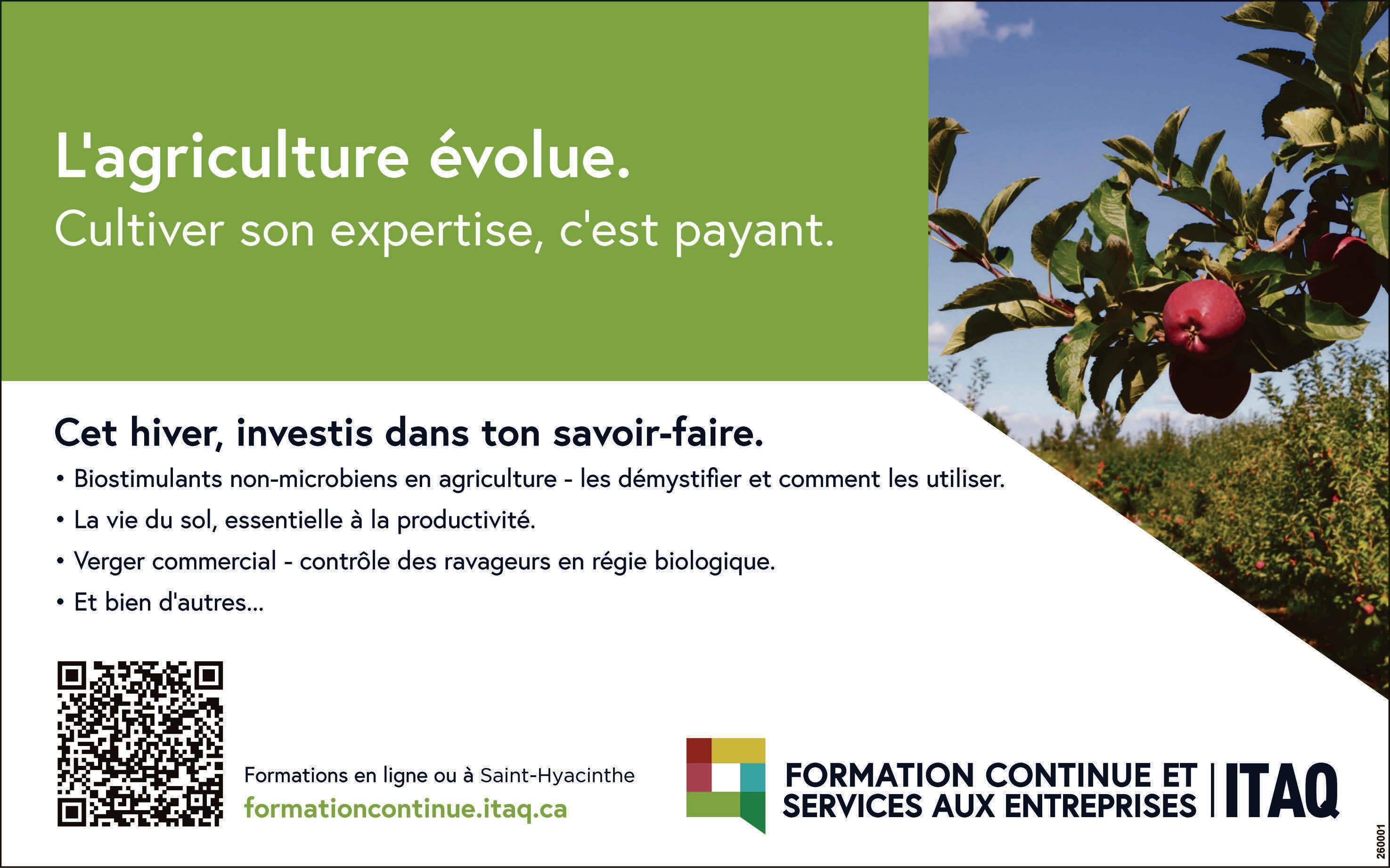 J.A. : Oui. Le CETAB+ offre depuis septembre 2025 un service de mentorat destiné uniquement aux conseillers. L’objectif est d’outiller ces derniers de manière à ce qu’ils soient toujours en pleine connaissance de cause dans le cadre de leurs interventions. On compte quelques formations, dont Mentorat sur la taille et la conduite des fruitiers (arbres, arbustes et vignes) et Mentorat sur l’analyse du coût de revient et l’utilisation de l’Agro-calculateur, qui sera d’ailleurs offerte 100 % en ligne les 9 et 16 avril de même que les 7 et 14 mai 2026.