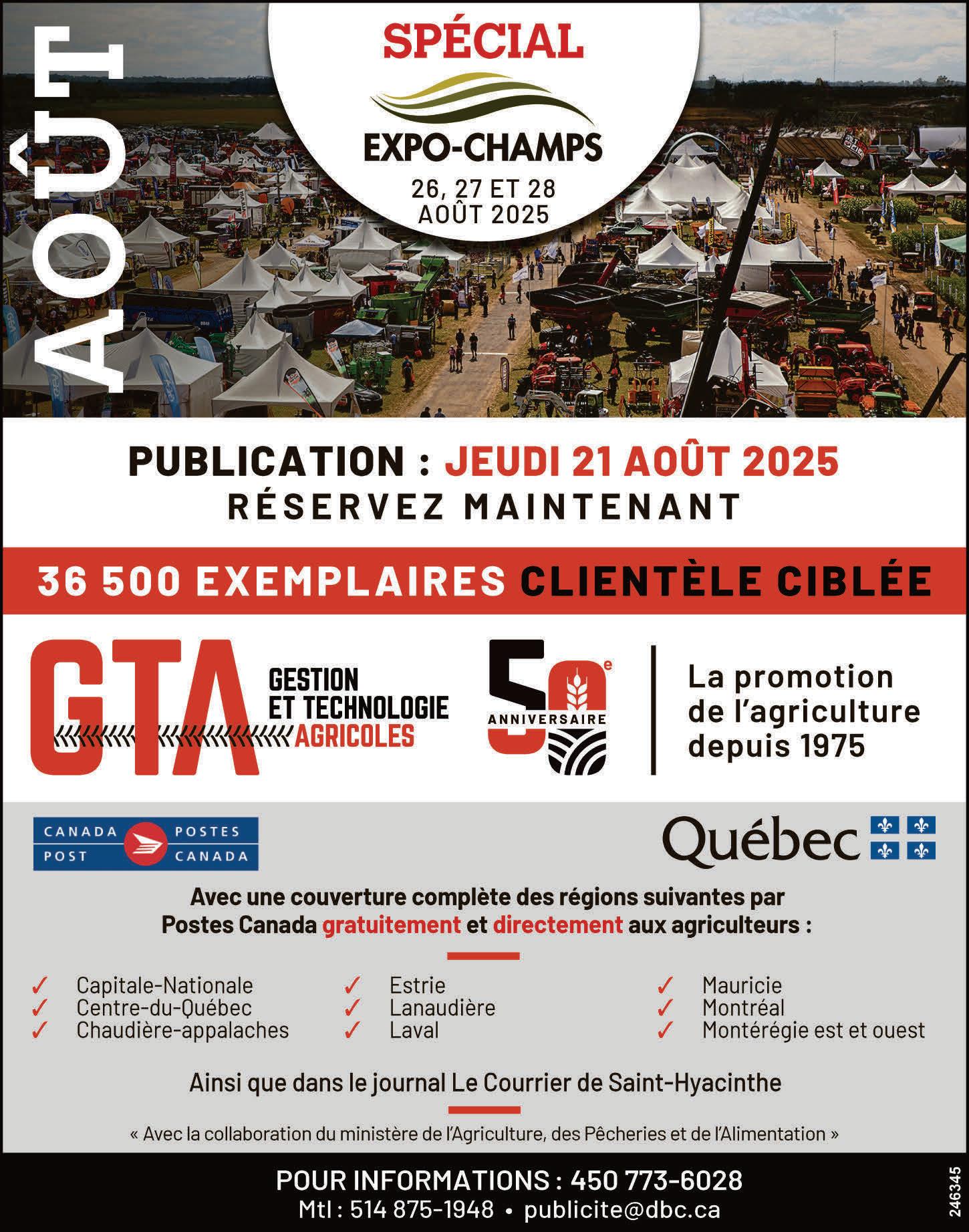 M. Messier rappelle qu’il s’agit de la dernière édition de l’Expo agricole qui sera présentée selon la configuration actuelle, la démolition du Centre culturel et récréatif situé sur le site étant prévue au cours des prochains mois. L’événement disposera alors de 20 000 m2 additionnels. « Un réaménagement est certainement à prévoir de ce côté », conclut David Messier. À suivre!