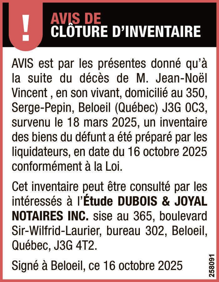 Le 9 octobre 2025, à l’âge de 82 ans, est décédée Mme Françine Bertrand, fille de feu Léon Bertrand et de feu Laurette Lahaie.