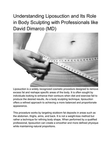 Dr. David Dimarco is a board-certified surgeon with almost forty years of private practice experience, but now has a passion for transforming lives through the art of non-surgical, non-invasive body sculpting and medical aesthetics. For the last ten years, Dr. DiMarco has specialized and concentrated his knowledge and skills on in-office, non-surgical procedures emphasizing individual care plans tailored to each patient’s unique needs and desires. A native of Western New York, Dr. DiMarco received his B.S. in engineering from the Univeristy of Buffalo, followed by his M.D. from Albany Medical College in 1979, and completed surgical training from SUNY at Buffalo in 1986, when he first became board certified by the American Board of Medical Specialties. His new practice, Celebrity Body Sculpting and Aesthetics, where every patient is treated like a celebrity, is a sanctuary where safety, innovation, and artistry converge.