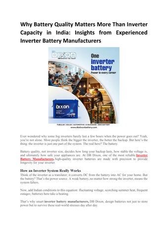 DB Dixon is one of the largest storage battery company based at Hyderabad. We manufacture widest range of conventional and VRLA batteries.