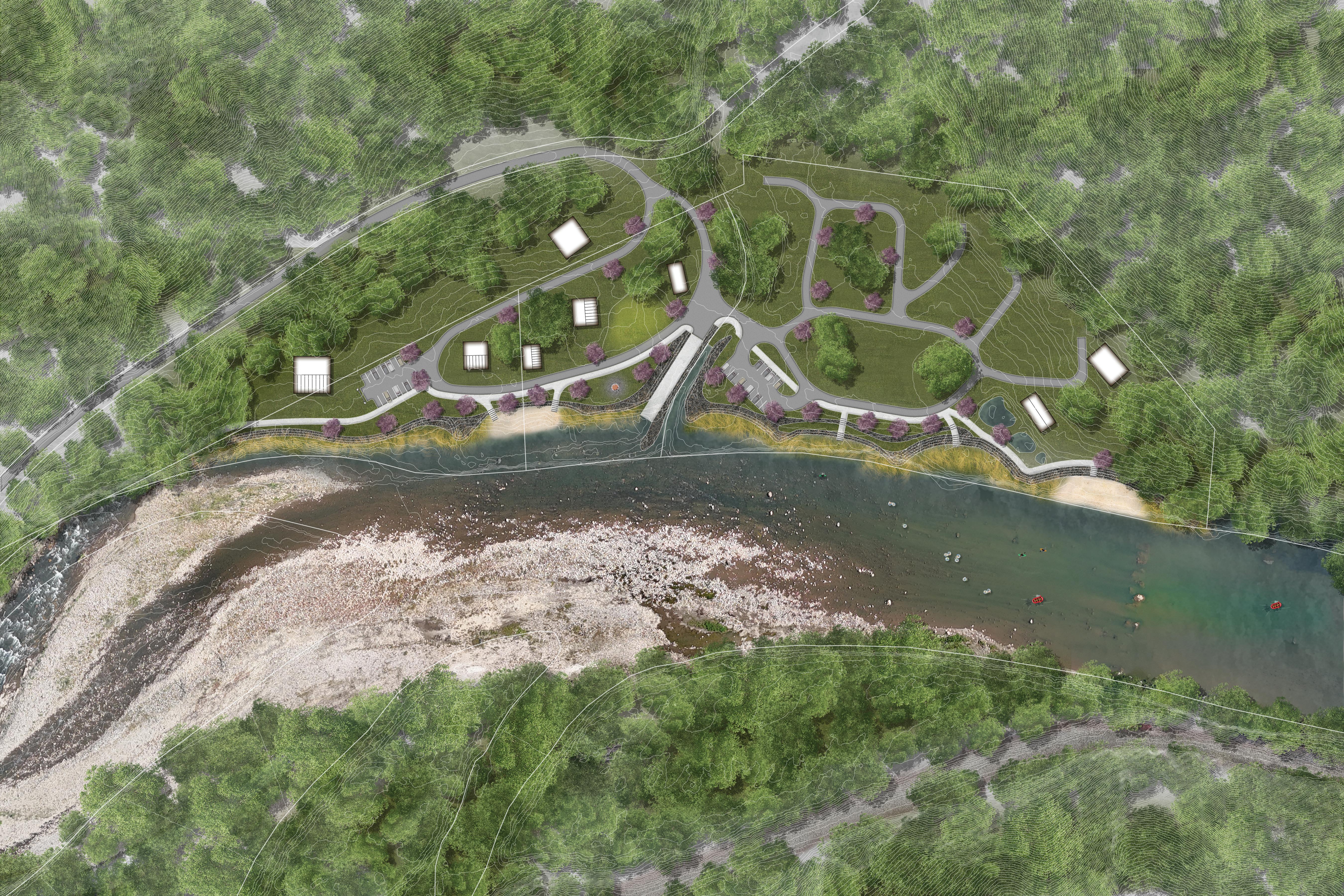 1.4.1 Chestoa Recreation Area. Collaborate with the US Forest Service to support the planned reconstruction and enhancement of the Chestoa Recreation Area, incorporating a public/commercial river access ramp, trailer parking, 6-stall restroom, dumpster, (2) 20’ x 30’ shelters, designated picnic / plaza areas, beach, and a natural surface trail loop.
