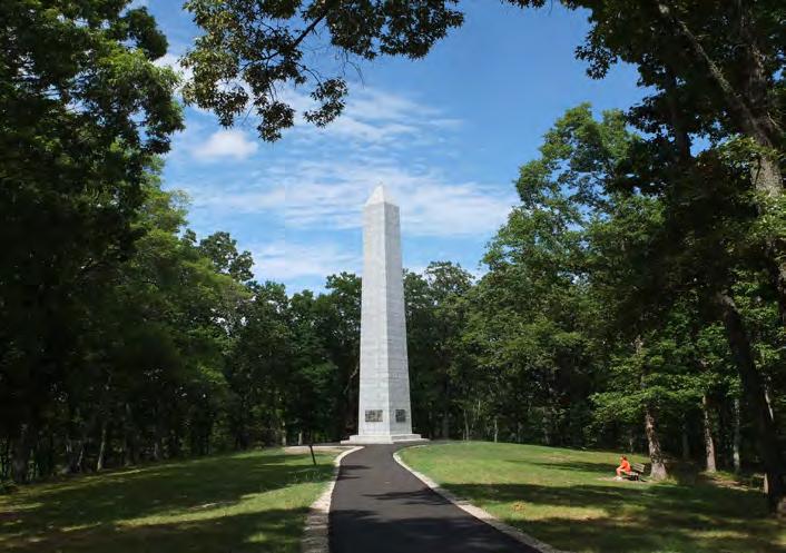 PHOTO: (05) The route utilizes Church St. from downtown Blacksburg. (06) The trail crosses York Rd. near the Hwy. 29 intersection. (07) Commemorative monument located along the Battlefield Trail at Kings Mountain National Military Park, the culminating battle site of the Overmountain March.