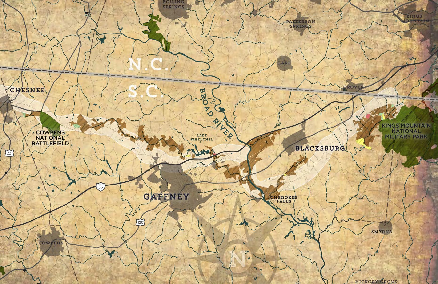 The trail planning process requires an analysis of the historic trail corridor between Chesnee and Kings Mountain. The trail is best suited in floodplain areas along creeks and rivers where development generally cannot occur and where there are meaningful connections to existing parks, civic buildings, and neighborhoods.
