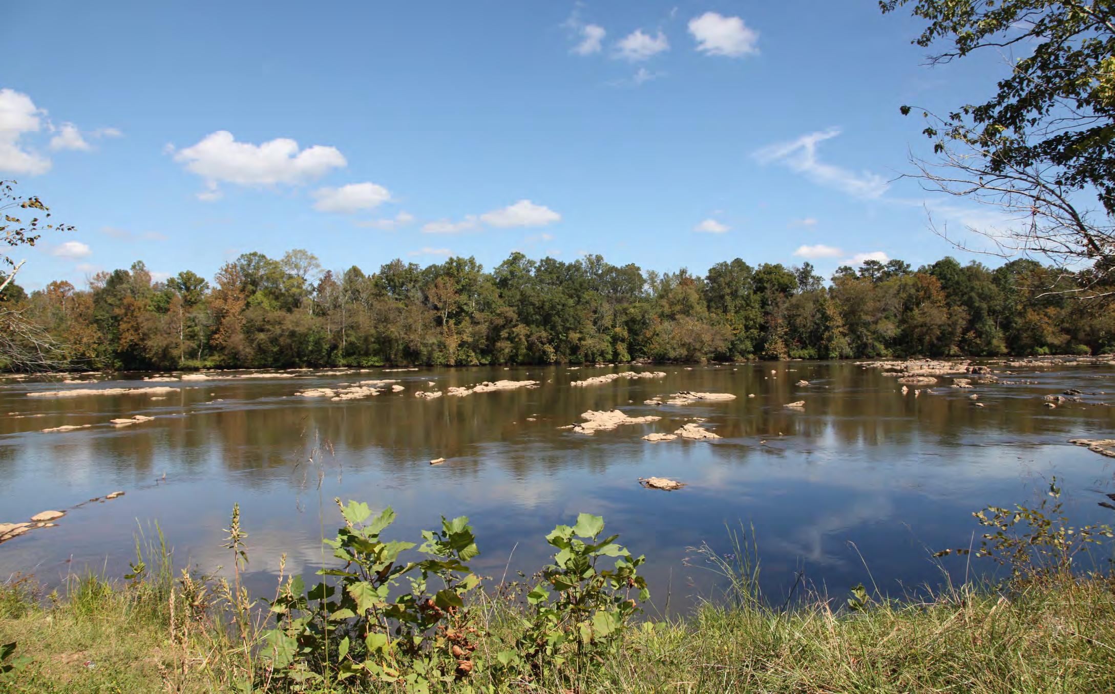 Bridge #12 is the Highway 29 bridge over the Broad River. The bridge features wide shoulder lanes that could be upgraded to accommodate the trail. Two alternate crossings are identified for the Broad River. The southernmost alternate crossing is located at Goat Island. The second alternate crossing is located at Cherokee Ford, the historic crossing of the Overmountain Men. Both crossings would require substantial bridges.