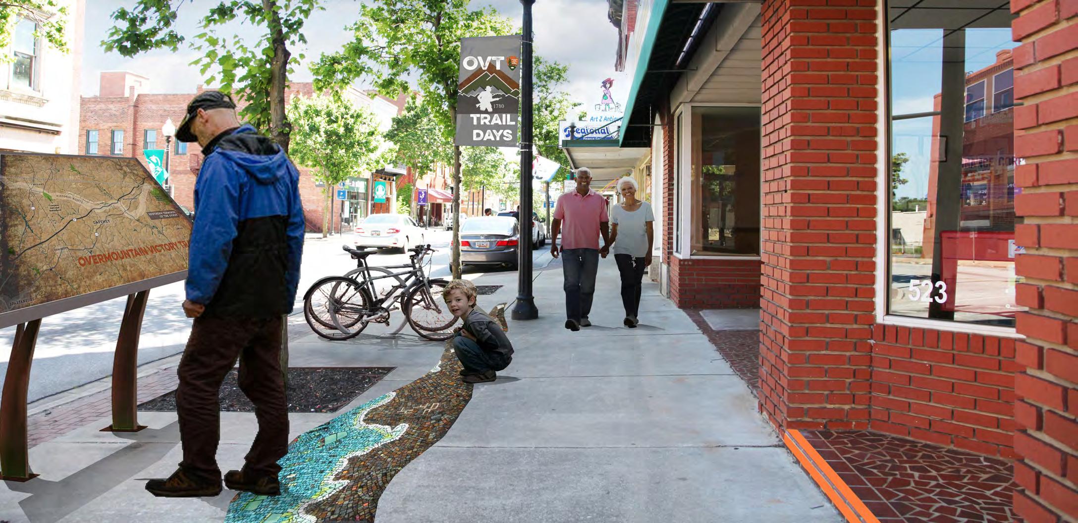 Blacksburg's recently-completed streetscape master plan provides recommendations for incorporating the OVNHT into the downtown and improving the pedestrian realm to draw hikers and cyclists from the trail into the town..