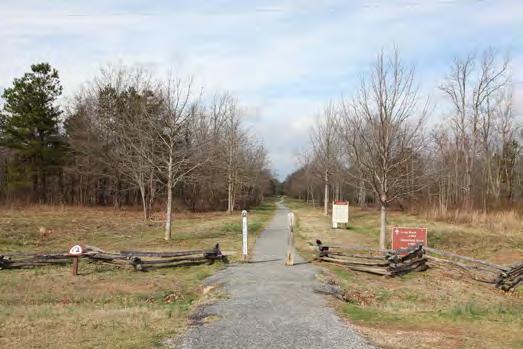 Kings Mountain National Military Park is the eastern terminus and trailhead for this study area. The park features two miles of certified OVNHT on the Battleground Trail. The Battleground trail can be accessed from the Visitor Center facility and parking area located on Battleground Road. Kings Mountain features several interpretive exhibits within the Visitor Center and along the Battlefield Trail that highlight the history and significance of the Overmountain Victory.