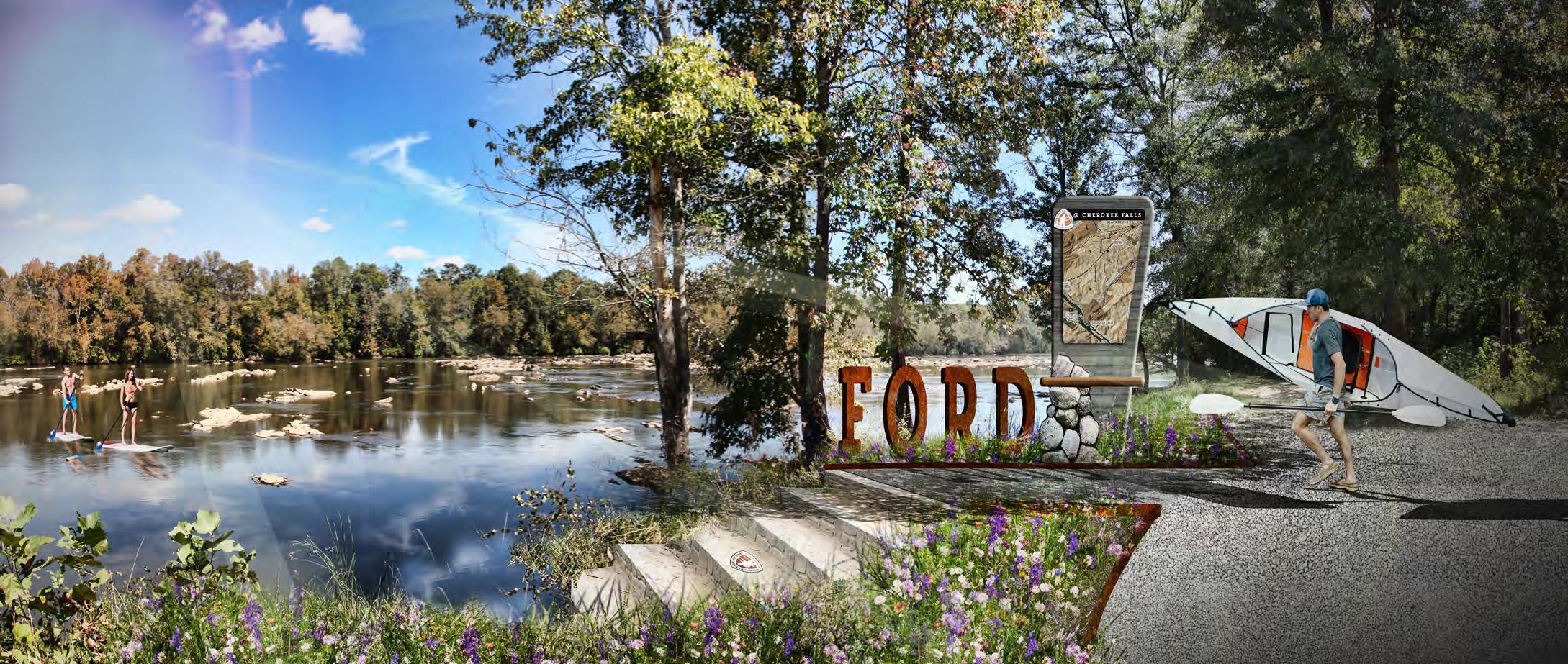 Cherokee Ford Recreation Area is located on the west bank of the Broad River near the location of the historic river crossing by the Overmountain Men. The 77 acre recreation area is managed by the Cherokee County Recreation District. Recreation amenities include baseball fields and facilities as well as public river access at the end of Wolf Den Lane. This area presents a significant opportunity to capitalize on the Broad River as a recreation asset and provide a unique trail destination.