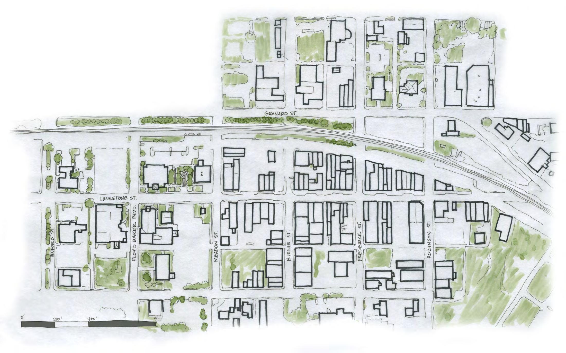 Section 3 : Enhance N. Limestone St. pedestrian realm and connection between City Hall, Gaffney Cabin, and future SCAR Discovery Center