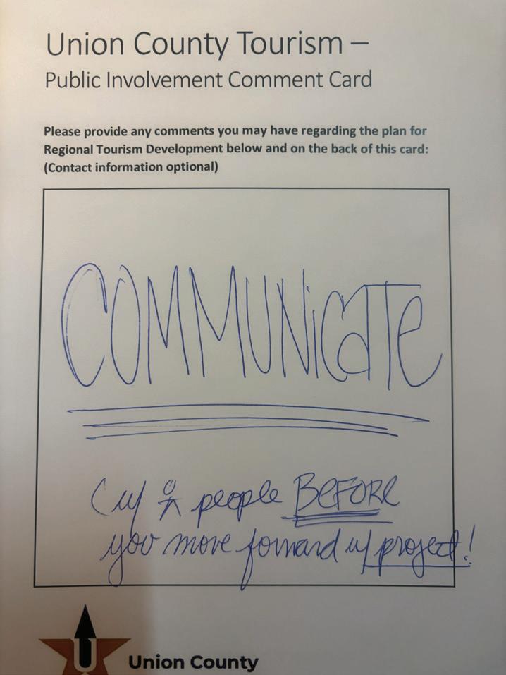 “The Union County Tourism Plan will identify strategies for tourism development that highlight the County’s unique cultural and natural resources and offer clearly defined recommendations that make the most of these assets to enhance the overall quality of life and help promote tourism within the County.”