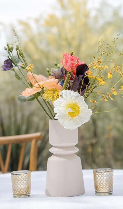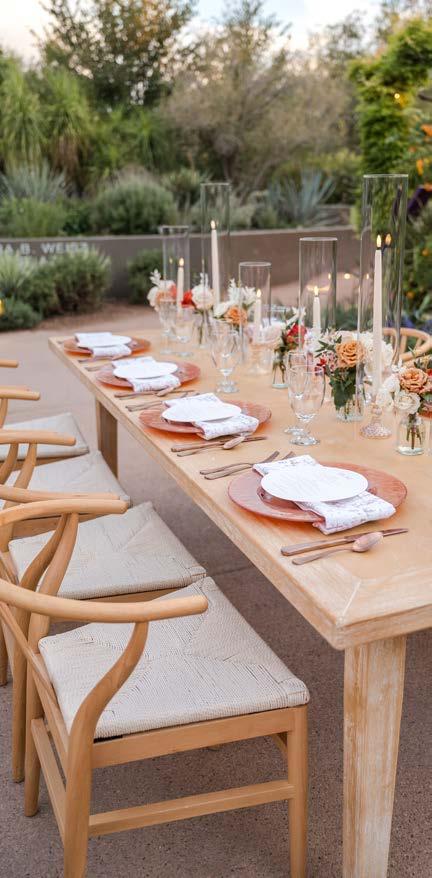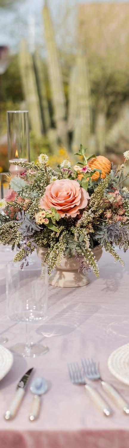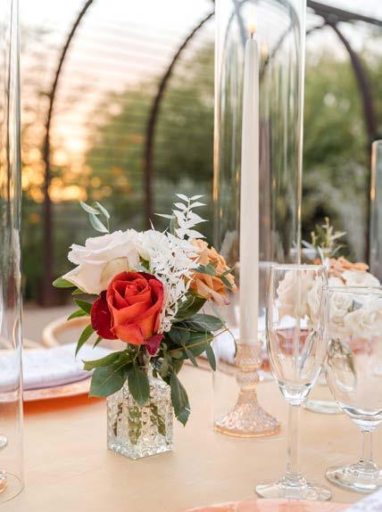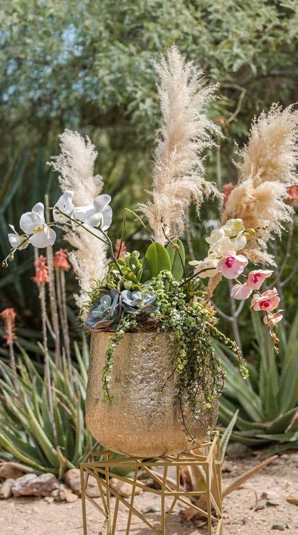 they must stay on a leash or in a kennel at all times. The pet must immediately leave the Garden at the conclusion of your ceremony. There are no exceptions to this policy.Because of the Garden’s collection and wildlife, confetti, bird seed, sparklers, wishing lanterns and rice are prohibited. Bubbles, flower petals and glow sticks are acceptable. Cut flowers are acceptable; live potted plants must be purchased through the Garden Shop (480.526.8891) or through a licensed nursery. Please see Preferred Vendor List for contacts. Live potted plants cannot be placed on or near existing Garden beds. All plants and flowers must be delivered the day of the event and removed from the Garden after the event. All flower petals must be swept up and disposed of after the event.