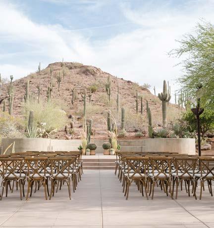 This lush location is nestled amid the Garden’s desert landscaping and features vibrant colors of the Arizona sunset. The refreshing scents of sage and lavender create a place for people to relax and take in the tranquility of the Garden while celebrating your outdoor wedding, cocktail hour or dinner reception.