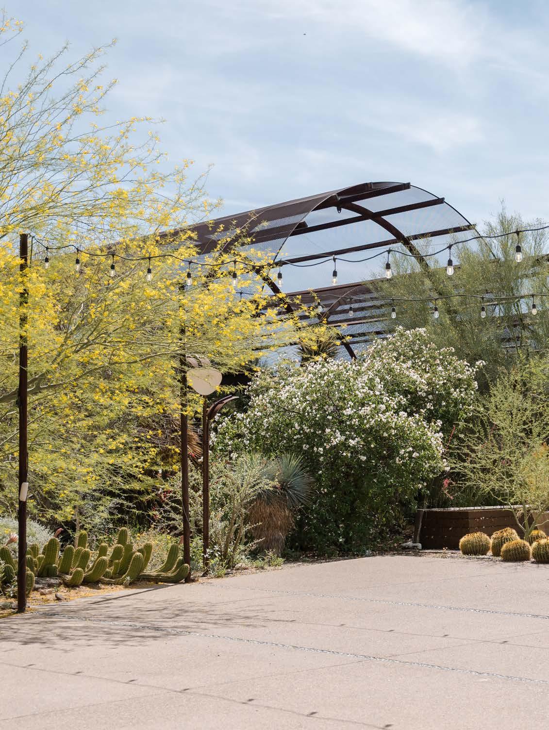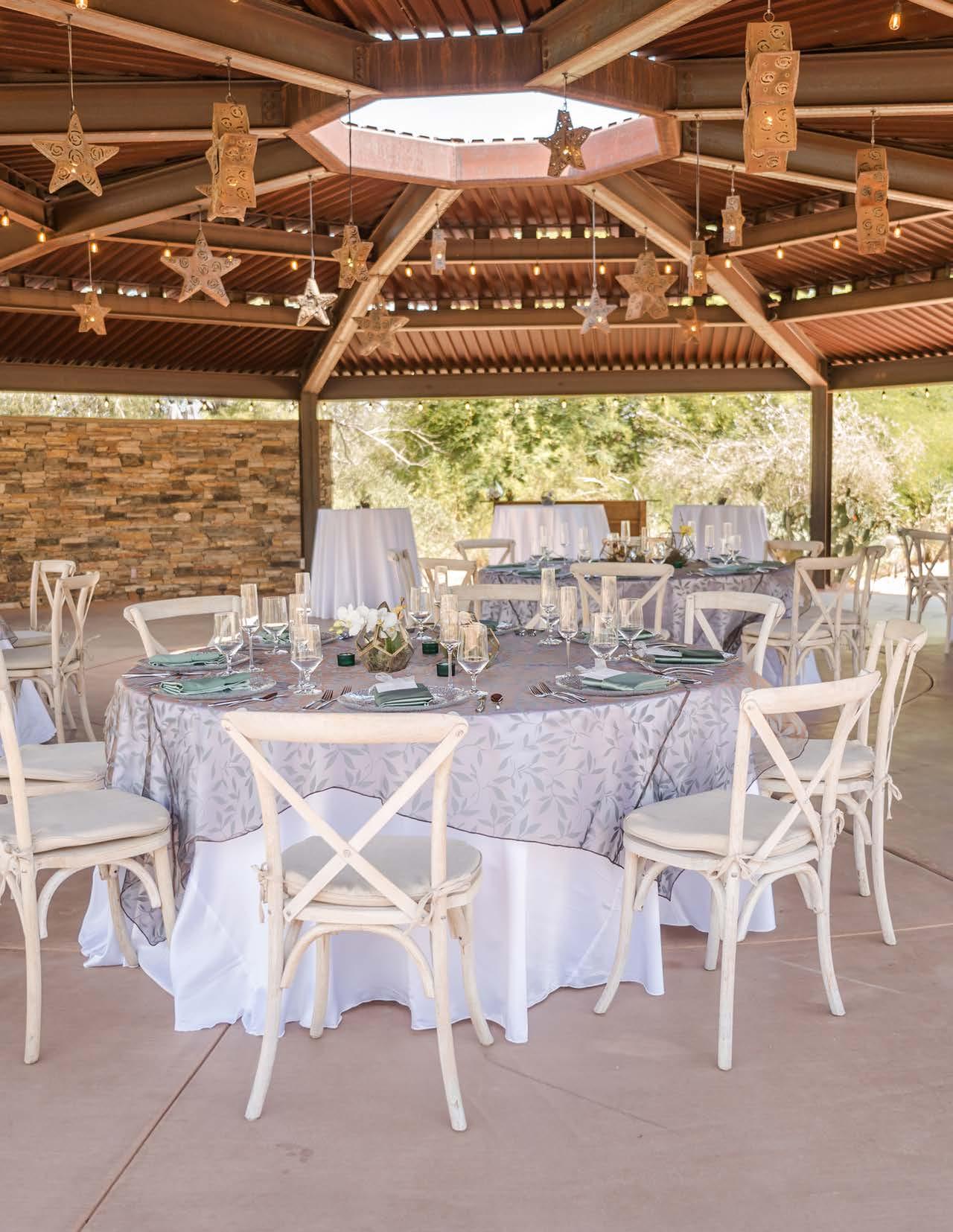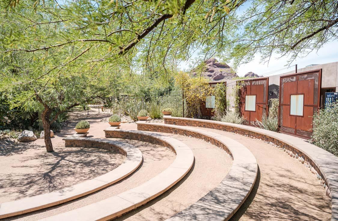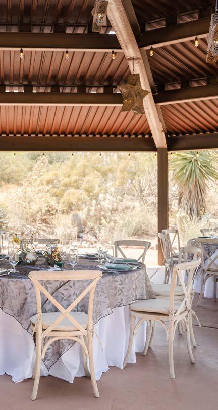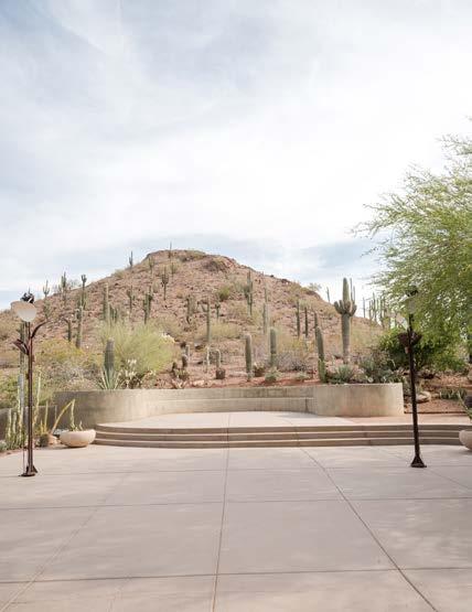 Located off the Harriet K. Maxwell Desert Wildflower Trail, this circular open-air pavilion is surrounded by desert plants and scenic views of Papago Buttes and Camelback Mountain. This location is enveloped in natural desert beauty, creating an intimate space with illuminated rustic stars for ceremonies, cocktail hours, dinner receptions and memorial services. Dine under blue skies or starry nights, which are visible through the pavilion’s center skylight.