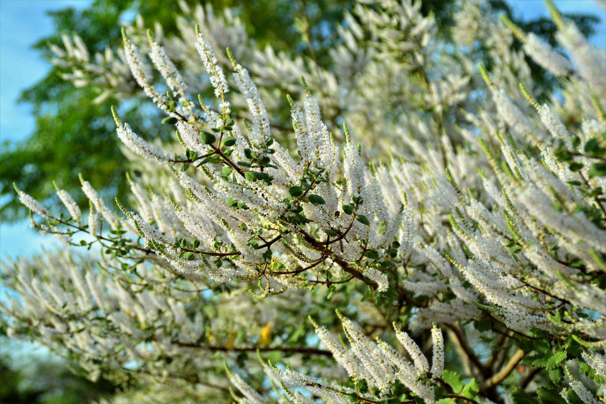 Thisbeautifulcenterpieceisideal forhot,aridgardens.Itfeatures fragrantwhiteflowersthatbloomin spring,thrivesinfulltopartial sunlightandremainsdormantin winter,reachingheightsandwidths of12feet.