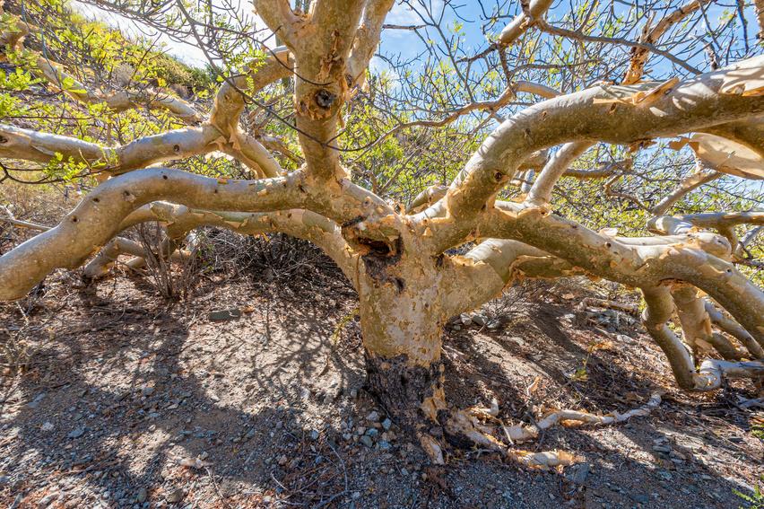 Astunningsucculentwithaunique paperybarkthatpeelsawayin largesheets.Duringsummer,it displayslovelycreamy-green flowers.Thisplantwillshedits leavesinwinter,reachingaheight andwidthof20feet.