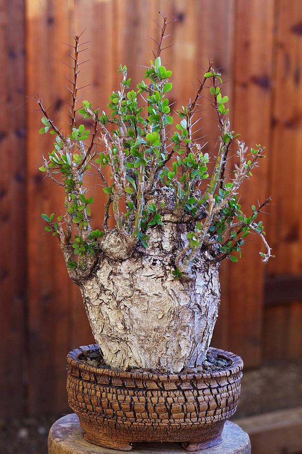 Acompact,thick-stemmedplant idealforbonsaicultivation.Itszigzagged,smoothbrancheslend themselvesbeautifullytobeing shapedintoaunique,captivating form.Wateringrequirementsare similartothoseofO.decaryi.