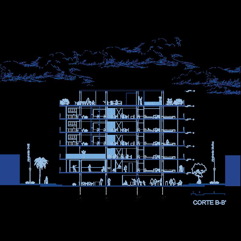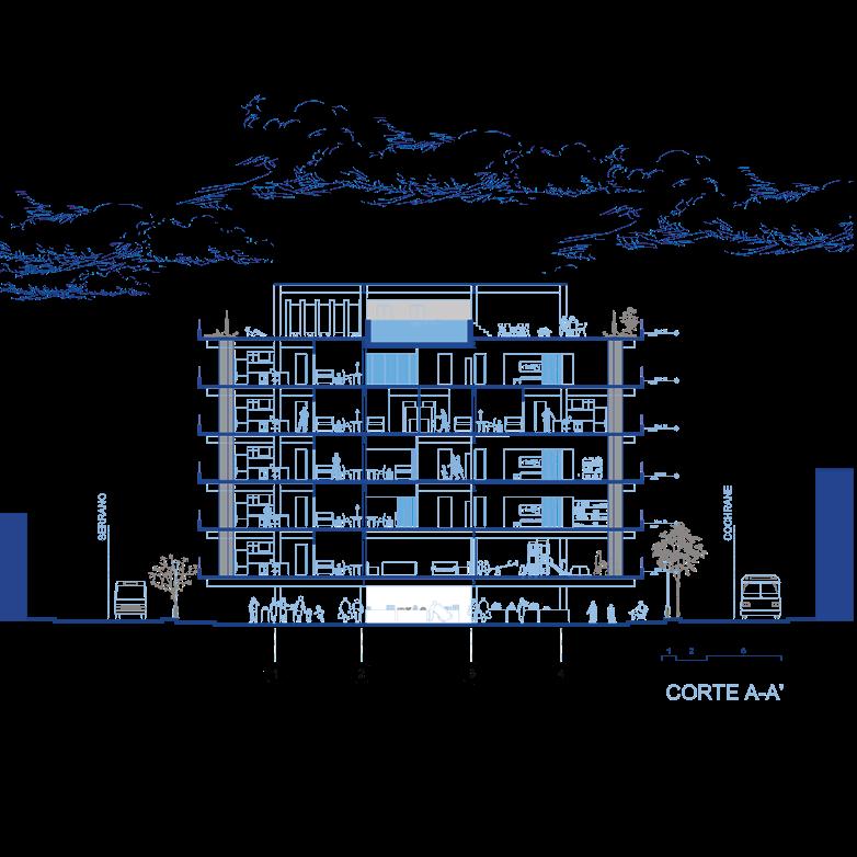 Proyecto: Se emplaza en una urbe de contexto estudiantil y laboral, es por ello que el edificio se diseña para potenciar el concepto de cohabitar desde lo doméstico.
