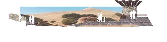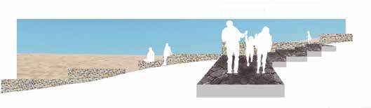 Proyecto: El proyecto aborda la materialidad de roca marina presente en las quebradas de las dunas y el acero como pieza de moldaje. Ambas partes construyen una infraestructura de nominada gavión, capaz de adaptarse al borde de la vegetación y fauna que brota en los sedimientos dunares. La infraestructura protegue esta fauna y evita que el sedimento dunar se pierda en la vegetacion y en el mar, preservando los campos dunares, permitiendo la integracion de la personas sin interrumpir el avance de las arenas.