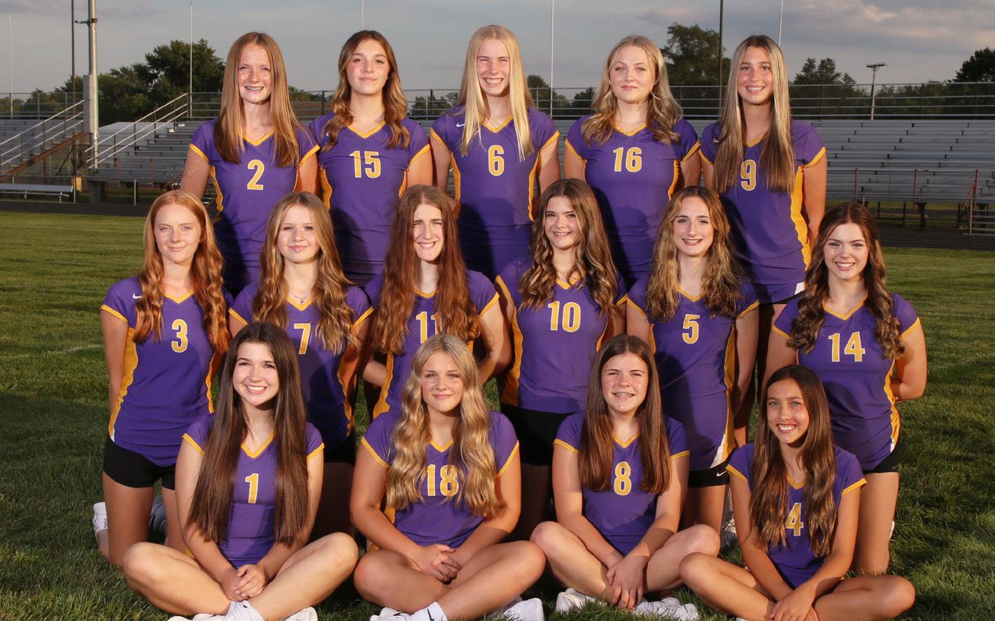 Row 2: Erin Schier, Courtney McWilliams, Emily Auestad, Ember Gunnink, Alyssa Mohney, Sydney Kidd Row 3: Coach Kaylee Libby, Lilian Hagg, Addison Erb, Anna Ptacin, Katie Jones
