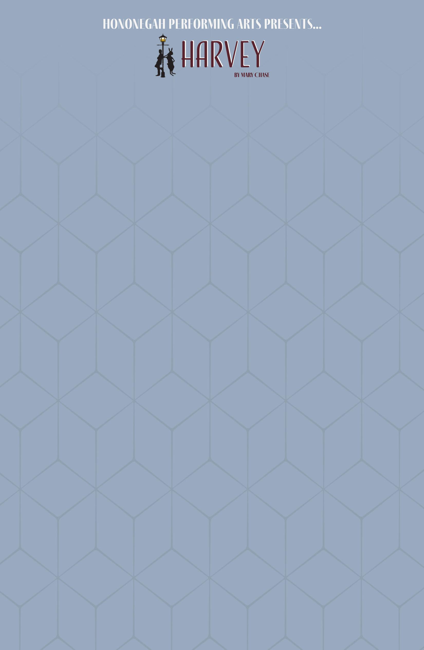 Hello, and welcome to Hononegah’s Performing Arts Center! Thank you for joining us for this performance, for supporting our students, and for patronizing local theatre in our community. When selecting a play to produce, two questions always drive my decision: why this play, and why this play now? Mary Chase was inspired to write Harvey upon witnessing a neighbor grieve the death of her son in the Pacific War, according to a profile article in the Saturday Evening Post. With the hope of making her neighbor one day laugh again, Chase began writing. Harvey premiered on Broadway in November 1944 to incredible success. Chase would even go on to win the Pulitzer Prize in Drama the next year, beating Tennessee Williams’s The Glass Menagerie. What was it that drew mid-1940s Americans to this play? For one thing, the news about World War II was negatively affecting the American public and psyche. Instead of following Mary Chase’s example and providing solace to our neighbors, we often give in to fear, allowing today’s dread-filled headlines to divide us. We find ourselves placing strangers, friends, and families in boxes based on how they react to and cope with our world. According to the encyclopedia kept in Chumley’s Rest, a pooka is a “fairy creature in animal form” from Celtic mythology that is “wise but mischievous.” While Harvey does have a “function” to slow down, manipulate, and even stop time, he does not abuse this power, aside from pulling the occasional prank. Harvey is only ever simply there which means one is always welcome to see Harvey if they allow themselves to see him. In a lot of ways, this play is an admonishment for how we ought to live our lives. While our world is filled with darkness and despair, if we open ourselves up to each other, engage in genuine fellowship, and truly see one another, we too can appreciate the beautiful mystery of our world that Elwood sees whenever he interacts with his invisible best friend. I invite you now to enjoy–and learn from–our production of Harvey.