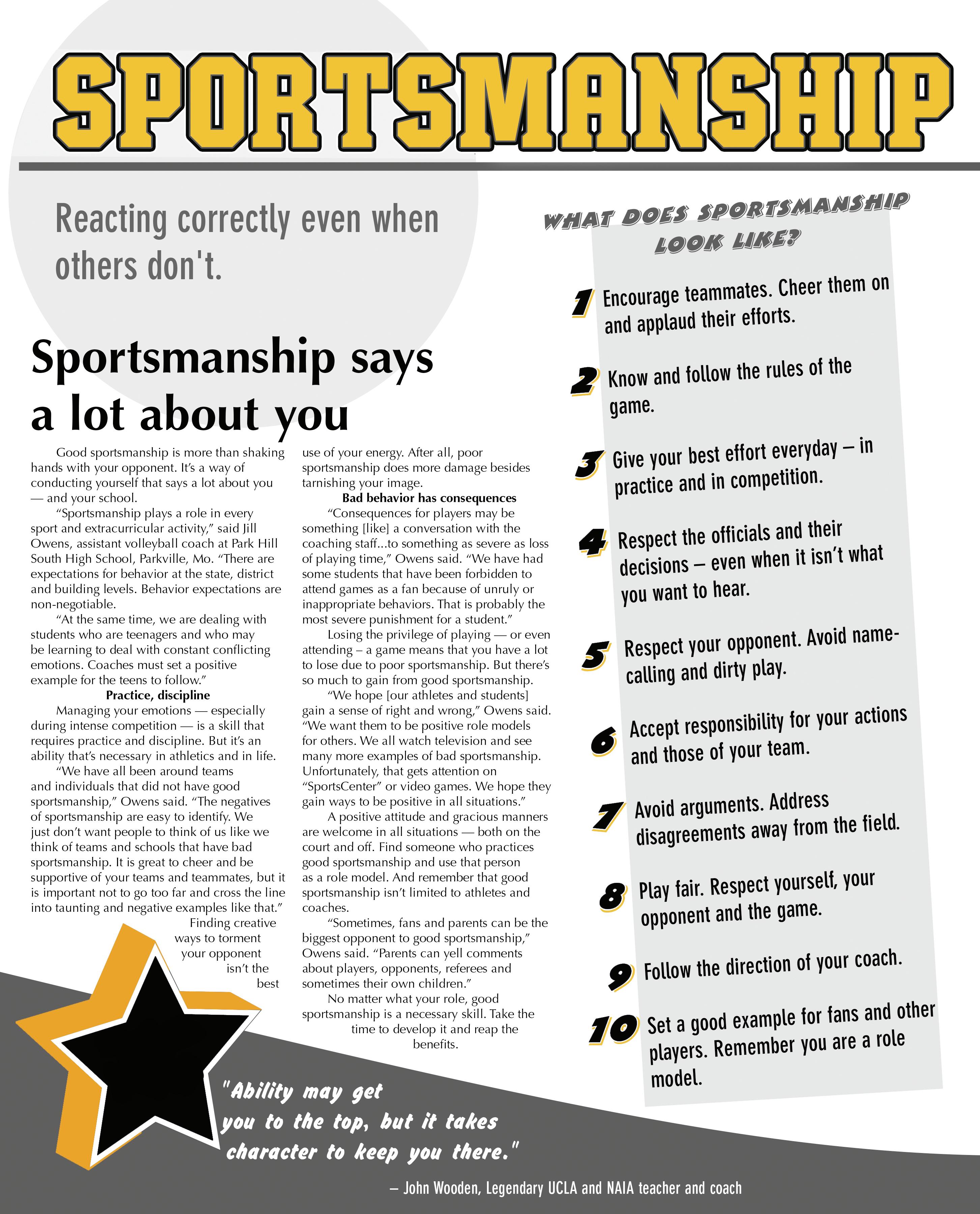 • Respects officials and accepts their decisions without gesture or argument.