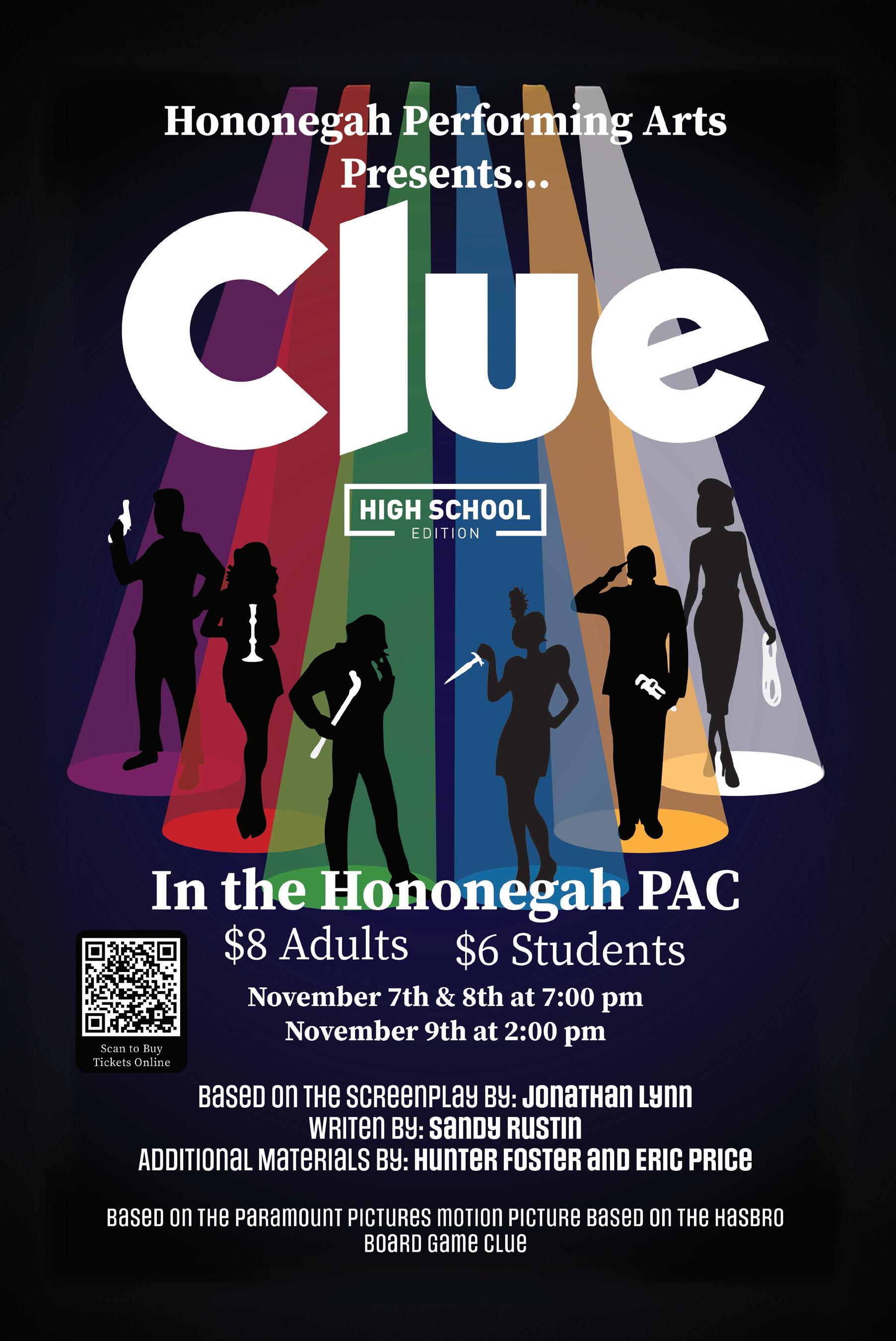 Hello and welcome to Hononegah Community High School’s Performing Arts Center for our fall production of Clue: High School Edition. Your support of local theatre and of the arts in education does not go unnoticed and is of the utmost value to the students, faculty, and administration. Thank you! Before I made the decision to make Clue this year’s fall production, I knew that, like any other production, it would bring its own unique challenges. Specifically, we needed the set to accommodate the interior of Boddy Manor, the mansion in which the entire play takes place. Mr. Bond, with the assistance of our Theatre classes and build crew, constructed two 16-foot diameter turntables, each divided into three equilateral sections. Each turntable is hand-operated, so every time one of them rotates, please know that there are several crew members playing what looks like a game of tug-of-war backstage as they pull to move each turntable. There are so many elements I love about Clue: the over-the-top humor, the board game on which the play is based, the cult classic film with Tim Curry as Wadsworth.