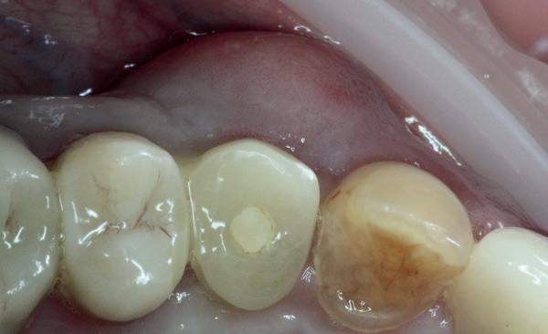 Tijdens de behandeling leek alles goed te gaan. De patiënt verliet tevreden de praktijk met een direct belaste tijdelijke kroon. Maar zes weken later kwam zij terug.